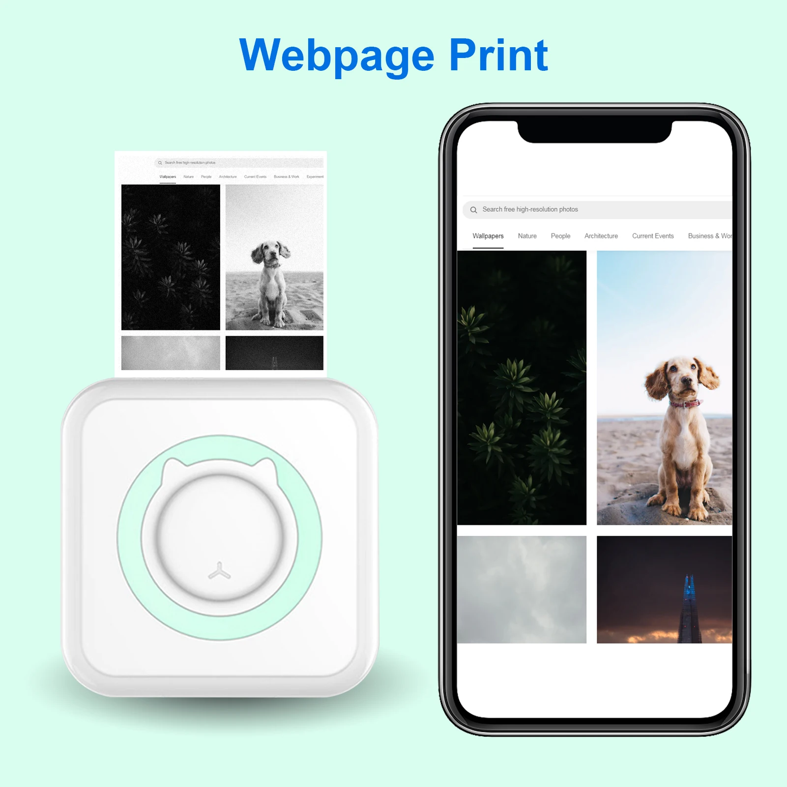 1.Multi-function: The photo printer can print photos, labels, messages, lists, records, QR Code, voice note and support web printing.