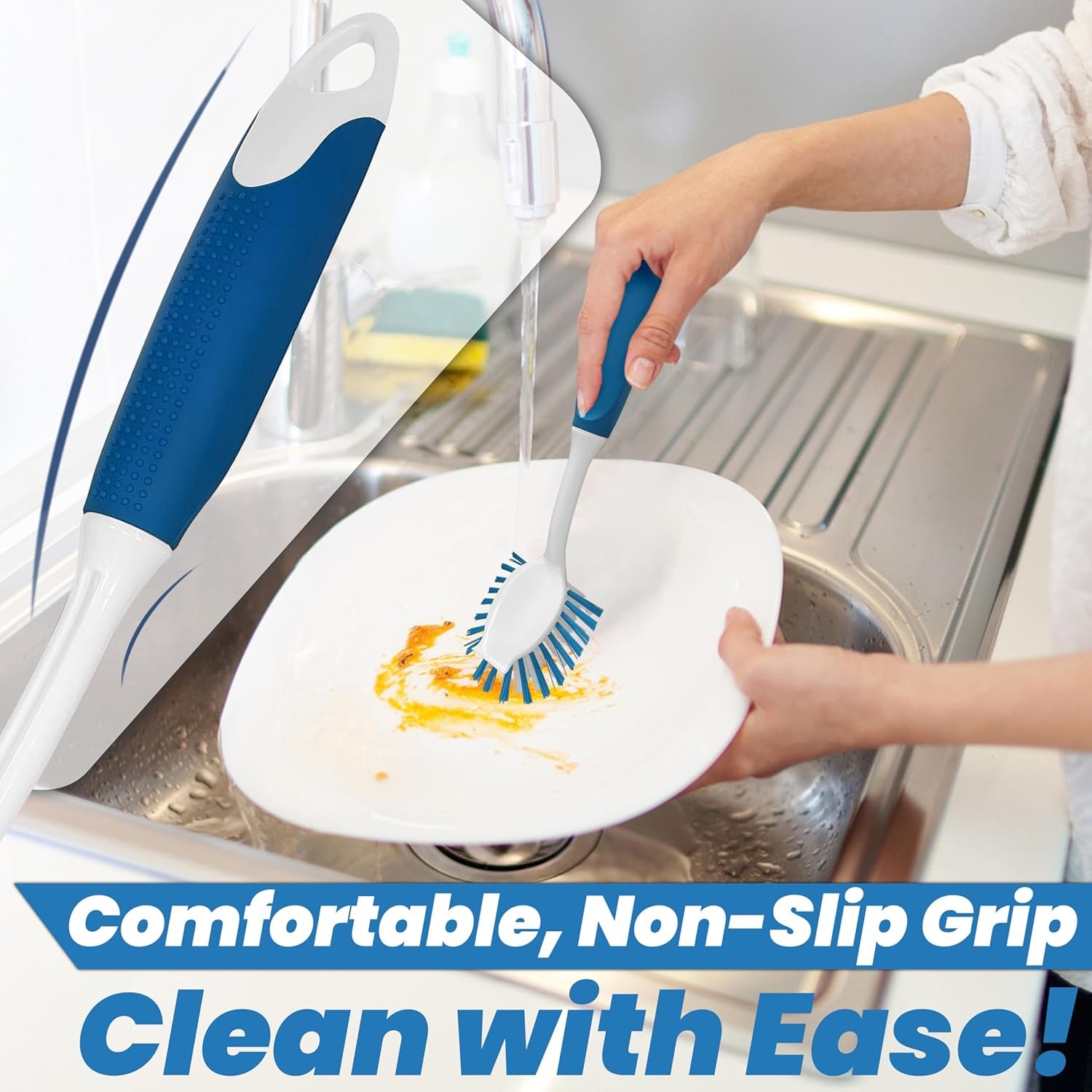 Non-Slip, Comfortable Grip: Designed for secure handling, the textured grip prevents slipping, reducing hand strain so you can scrub longer without discomfort