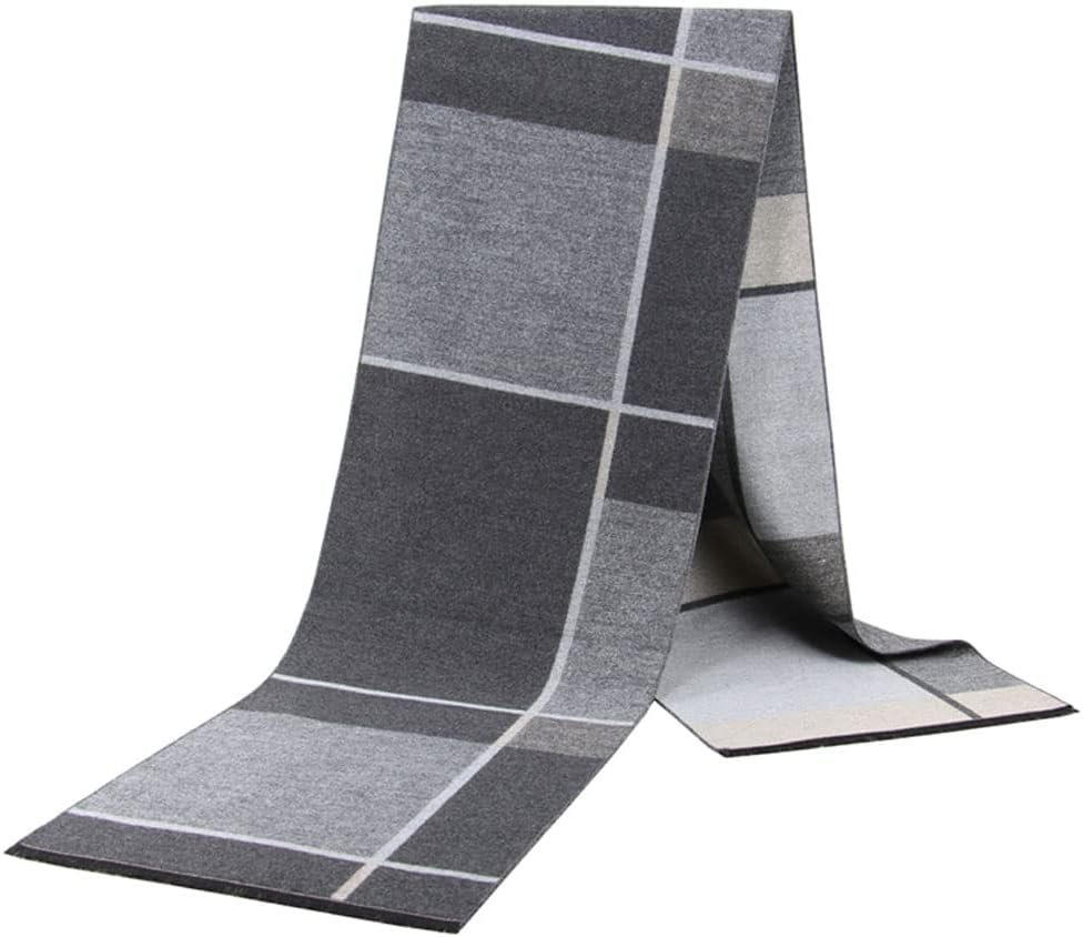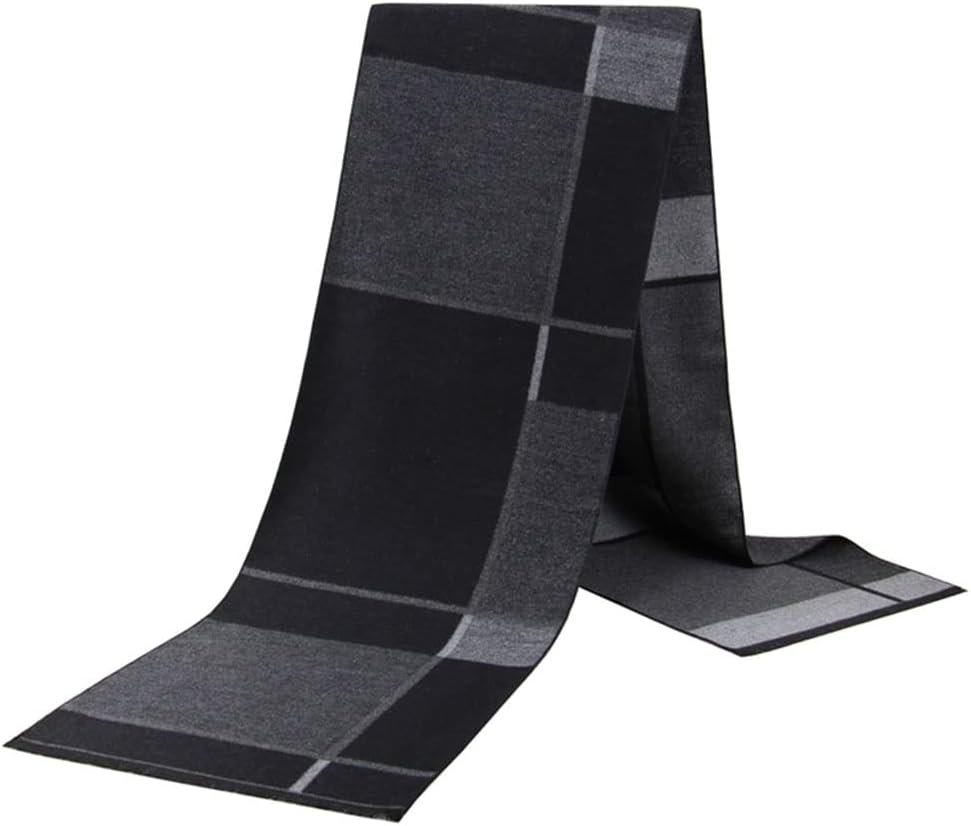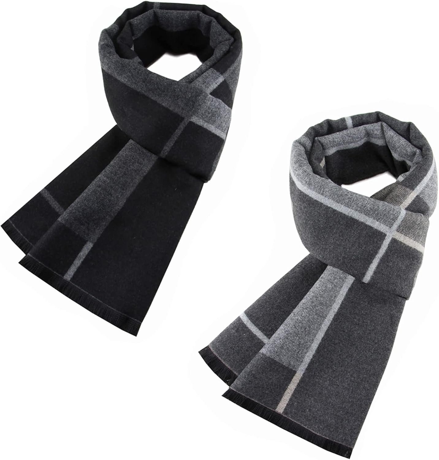 Pibupibu 2 Packs Cashmere Feel Men Scarf for Winter, Black Grey Lattice Grid Plaid Stripe Soft Warm Scarf