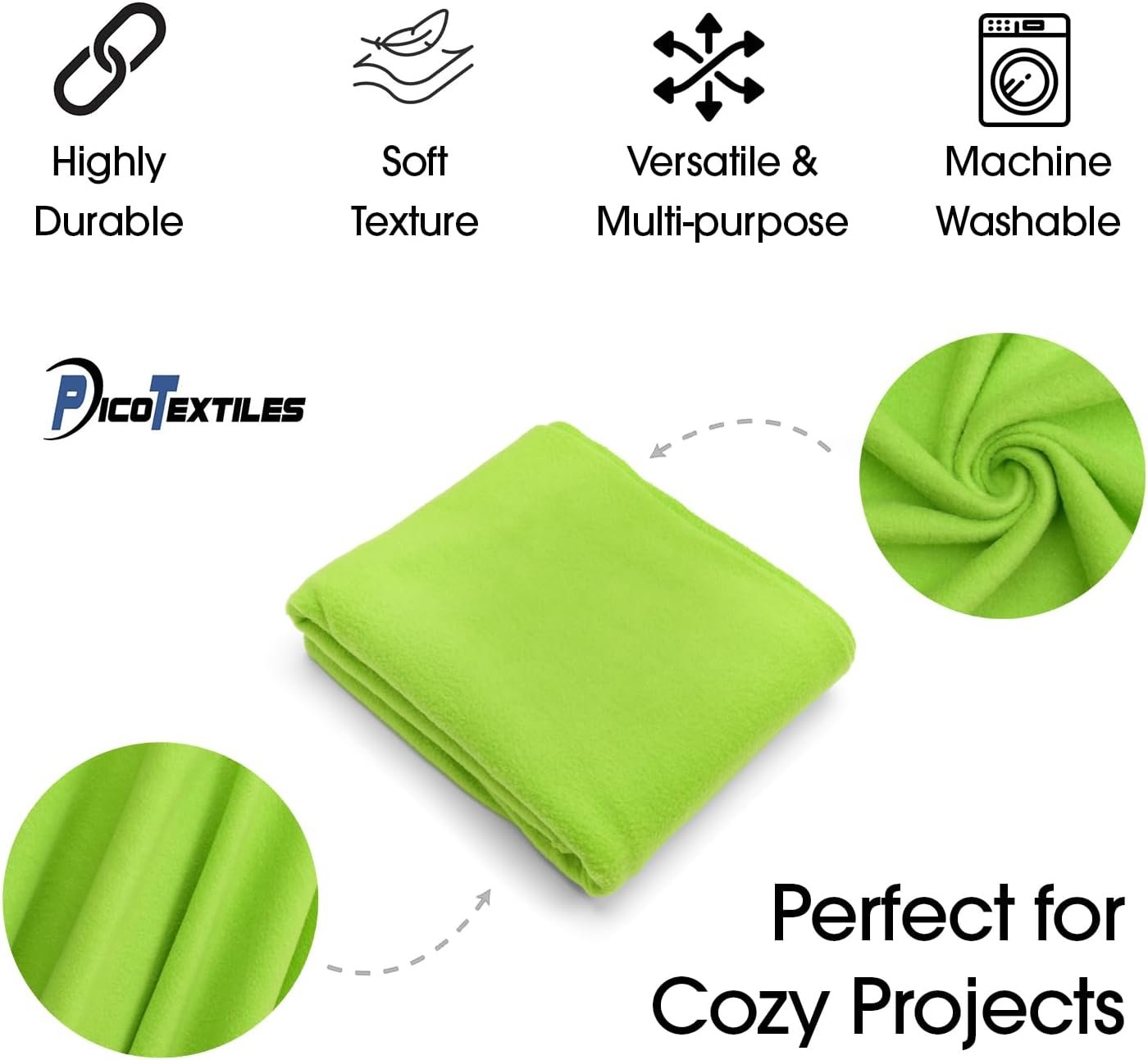 Pico Textiles 2 Yards – Lime Green Solid Fleece Fabric, Sold by The Yard, Variety of Colors, Ideal for Sewing Projects, Scarves, No Sew Fleece Throws
