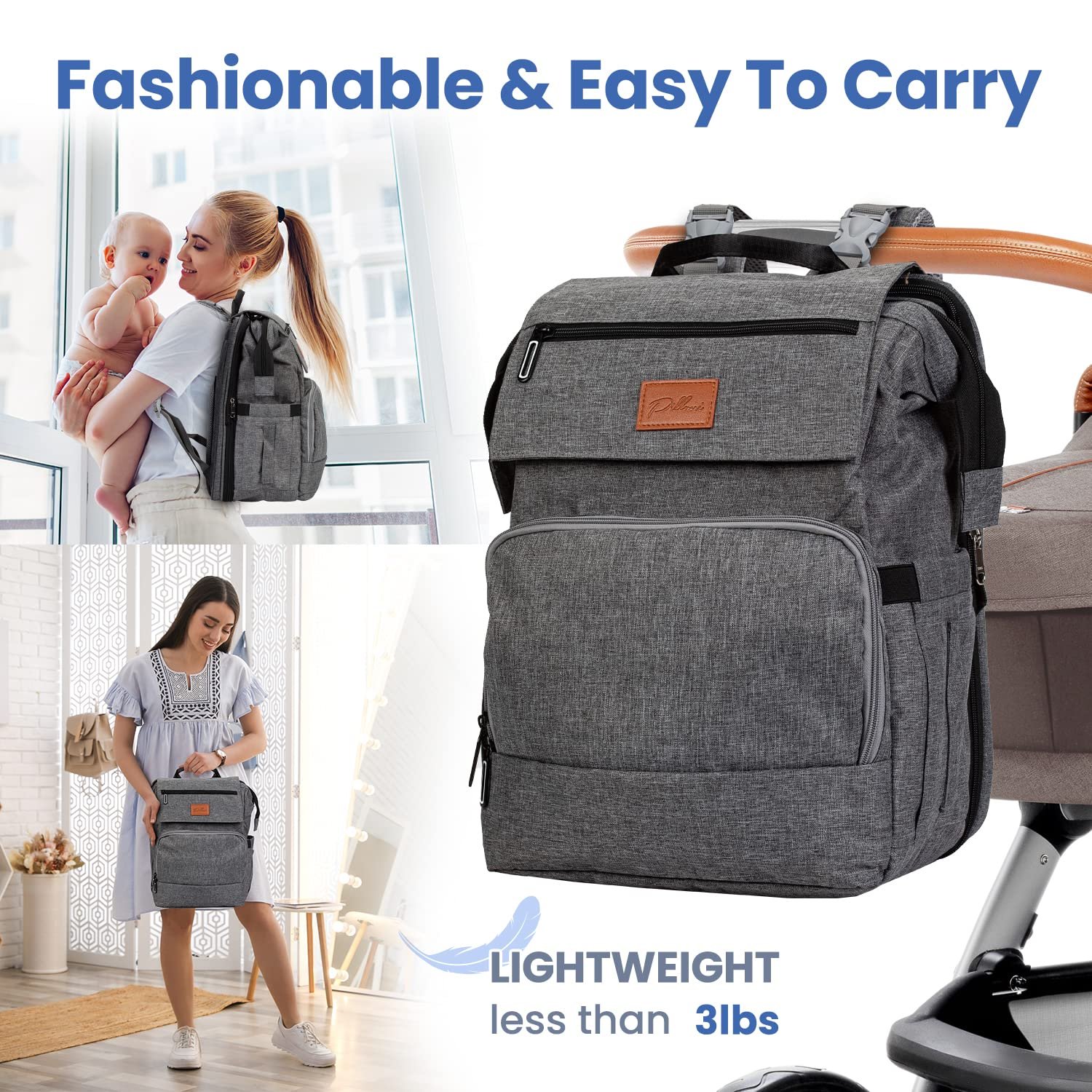 【Superior Quality & Structure】Built for years of use, our convertible XL diaper bag backpack is made of durable & waterproof 300D Oxford fabric that makes it ideal even during the wet season. Thanks to its unique, high-quality design, our diaper backpack allows you to have a bigger & more flexible storage for your baby essentials. It’s lightweight at less than 3 lbs w/ extra reinforced seams & deform and tear-resistant design that makes this Pillani diaper bag backpack & baby bag long-lasting.