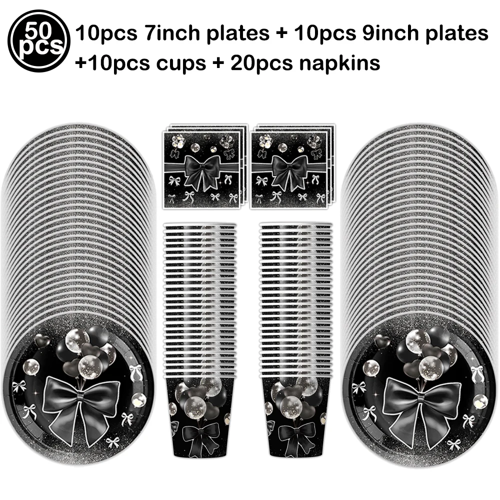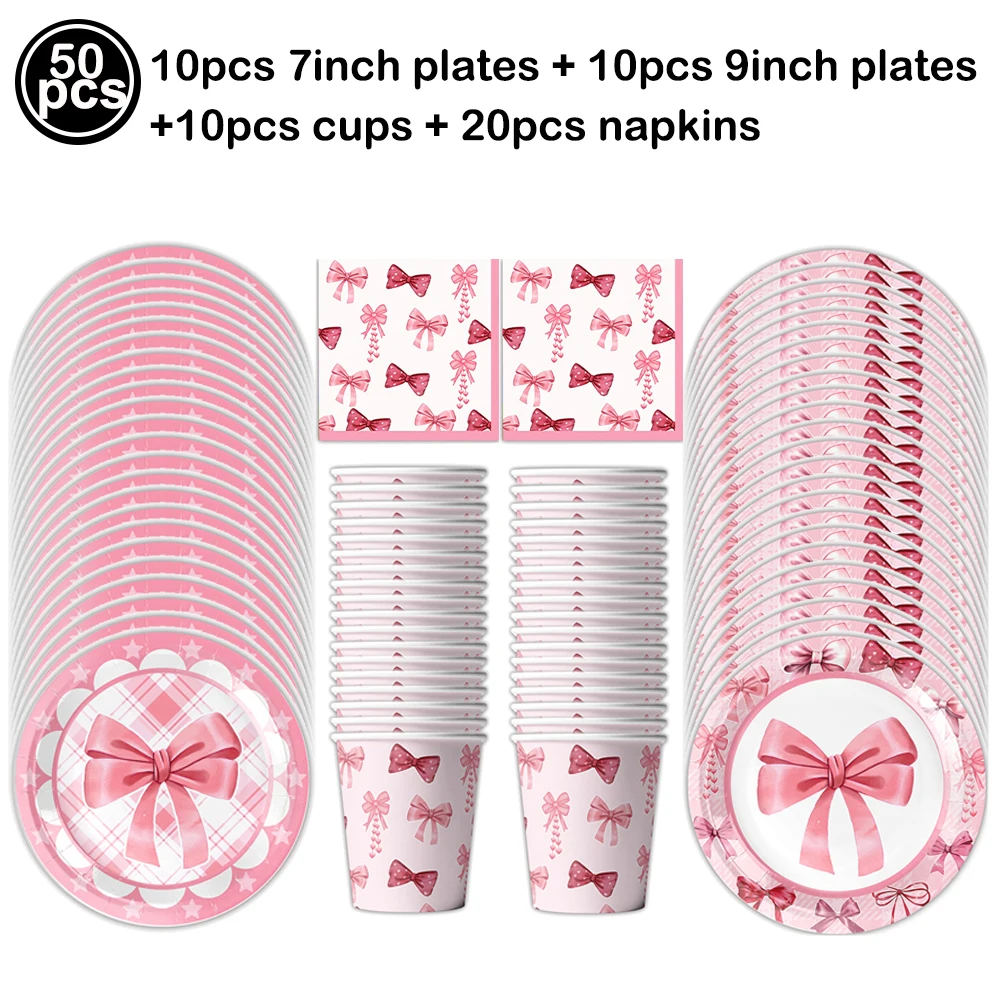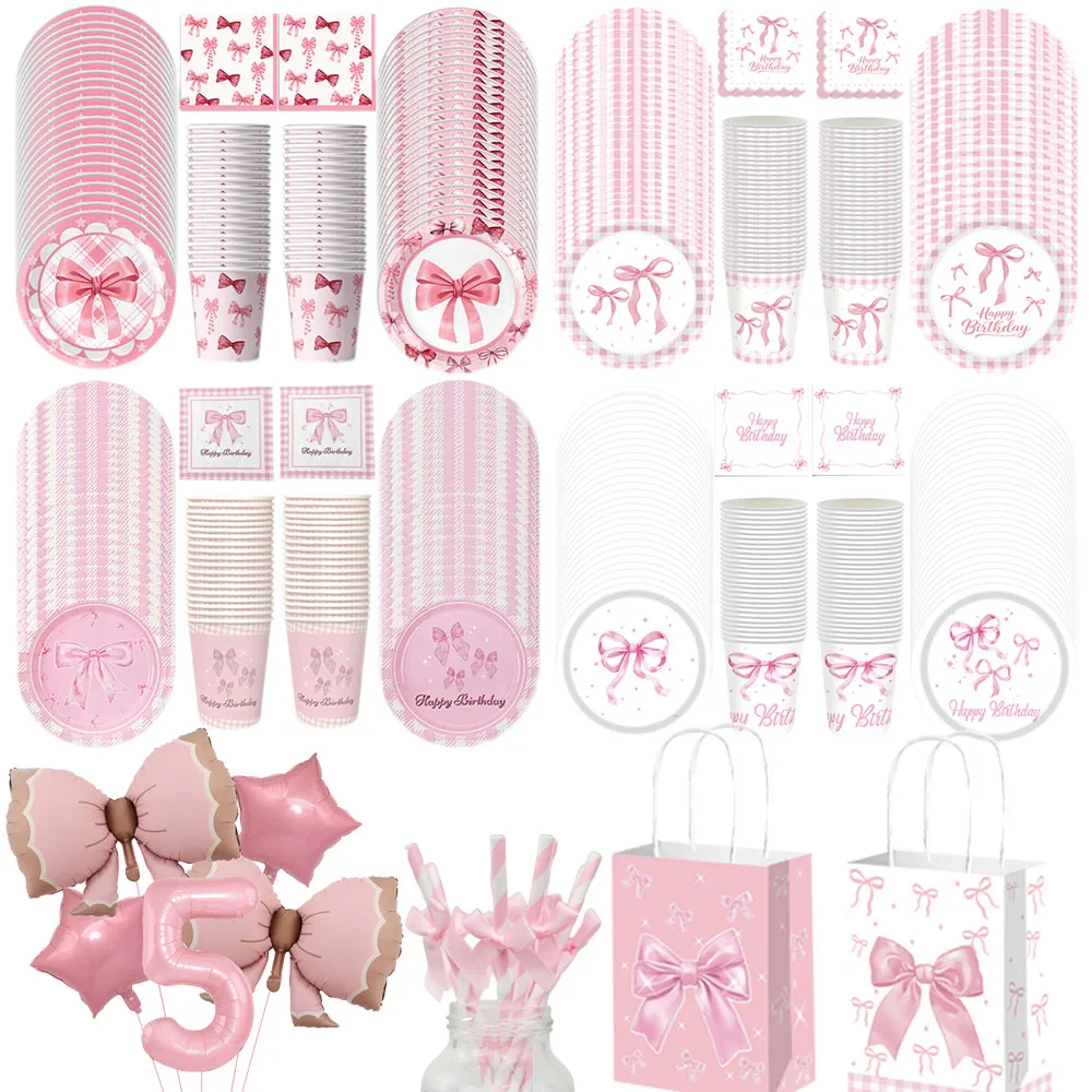 Pink Bow Birthday Party Supplies Disposable Bow Themed Tableware Set Engagement Wedding Girls Birthday Bachelorette Party Decor