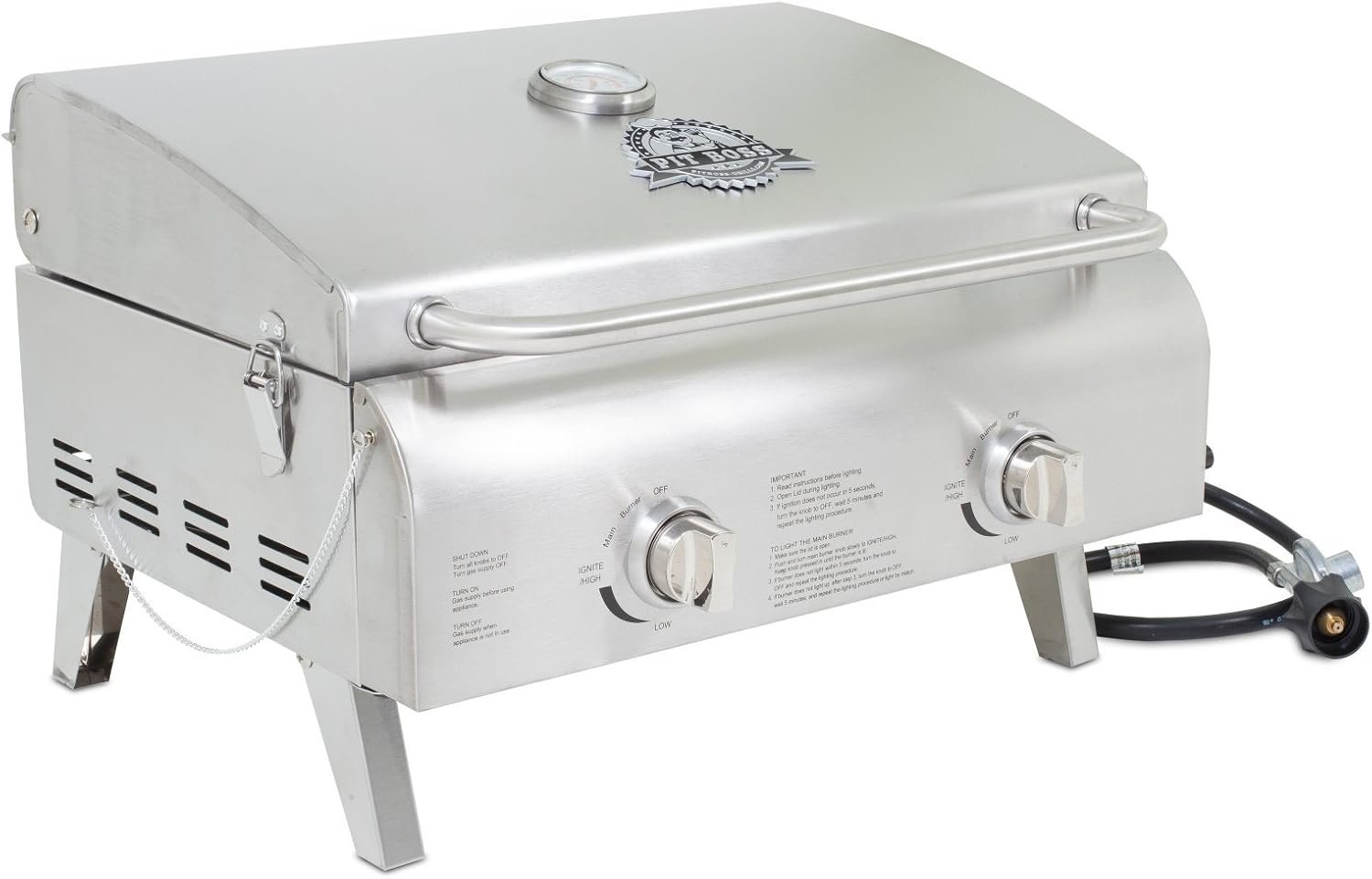 Grill on the go with the all-new Pit Boss 200P. The 200P may look small, but it packs a big punch with 275 sq. inches of cooking surface and 20,000 BTU. Fueled by propane, this mobile unit offers 304 stainless steel cooking grids wrapped inside a sleek stainless steel exterior. Push and turn ignition, ABS controls and a built-in dome thermometer: the 200P comes complete with all your grilling essentials. Take it on camping trips or to tailgate celebrations: the Pit Boss 200P is perfect for any travel experience. Be the Boss and pick up a Pit Boss 200P today!