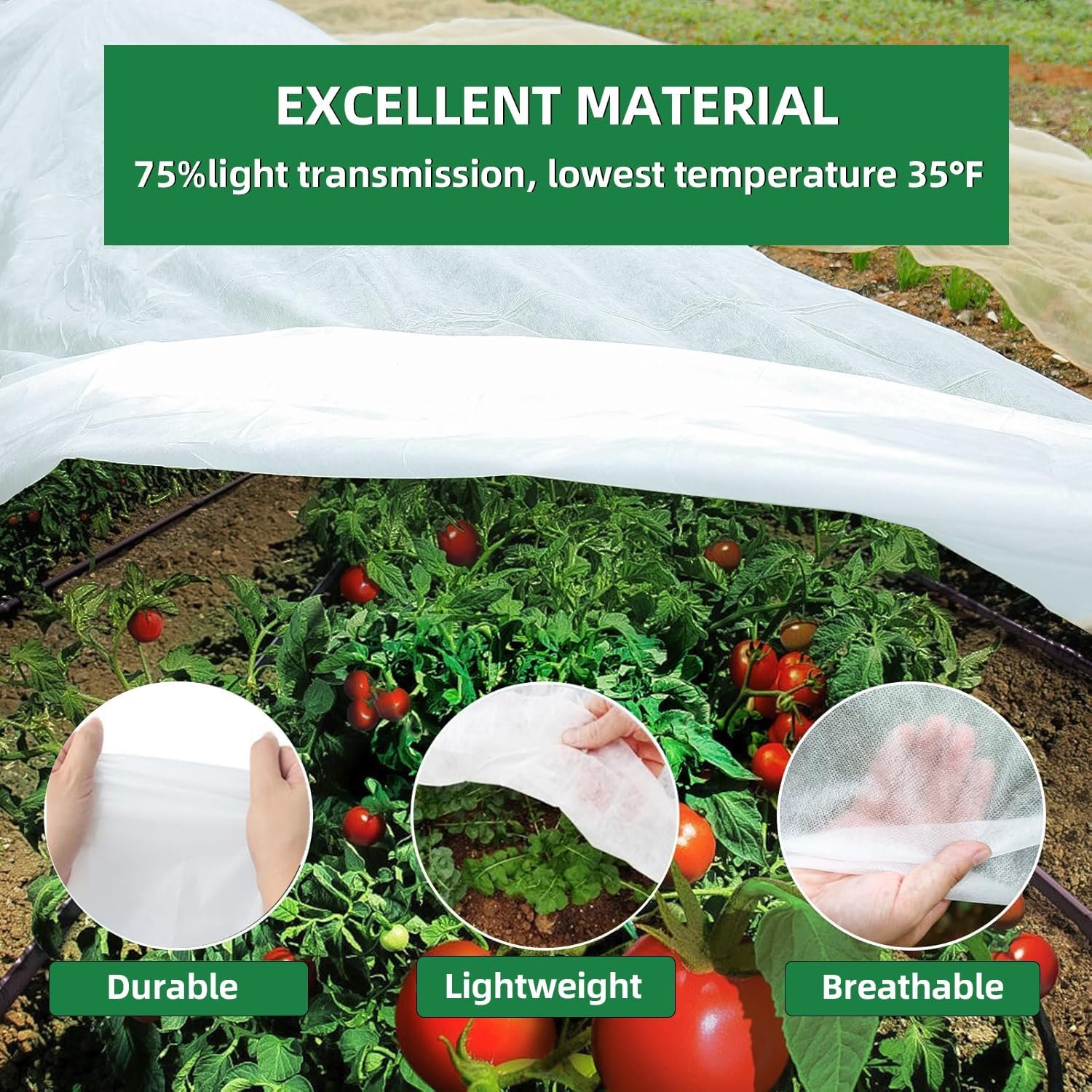 THICK FABRIC WITH UV PROTECTIVE COATING – The frost blanket is made of 0.74 oz/yd² high quality spun polypropylene fabric, protecting plants from the extreme cold of winter lowest temperature to 35°F. Lightweight, and breathable, allowing air, sunlight, and moisture to reach your plants. Strong, durable and not easy to tear, our plant antifreeze blanket is thicker and warmer. 75% light transmission, with UV protection coating, provide better and lasting protection for your plants