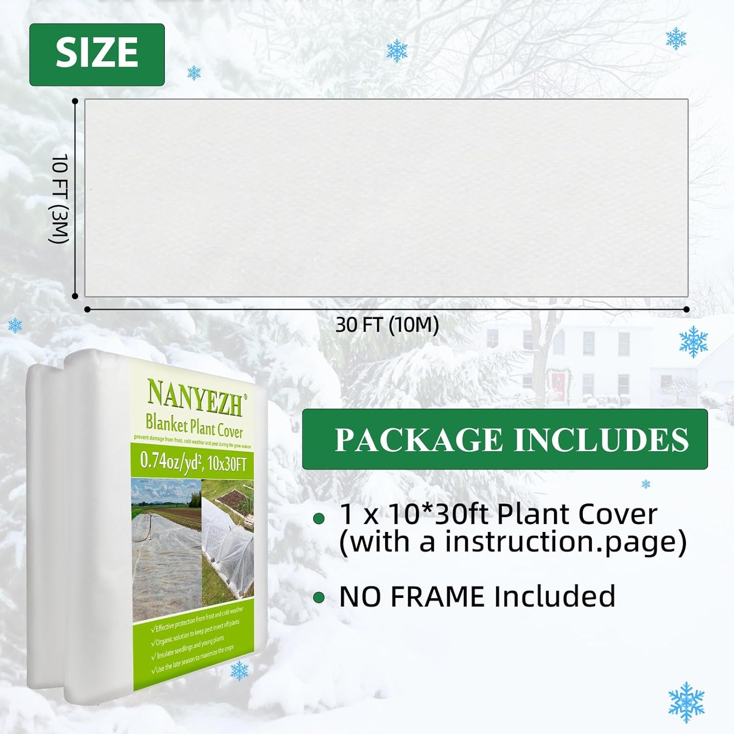 Plant Covers Freeze Protection, 10Ft x 30Ft Frost Blankets for Outdoor Plants, 0.74oz/yd² Garden Floating Row Fabric Cover, Raised Garden Bed Cover for Winter Vegetables, Pest, Sun Protection