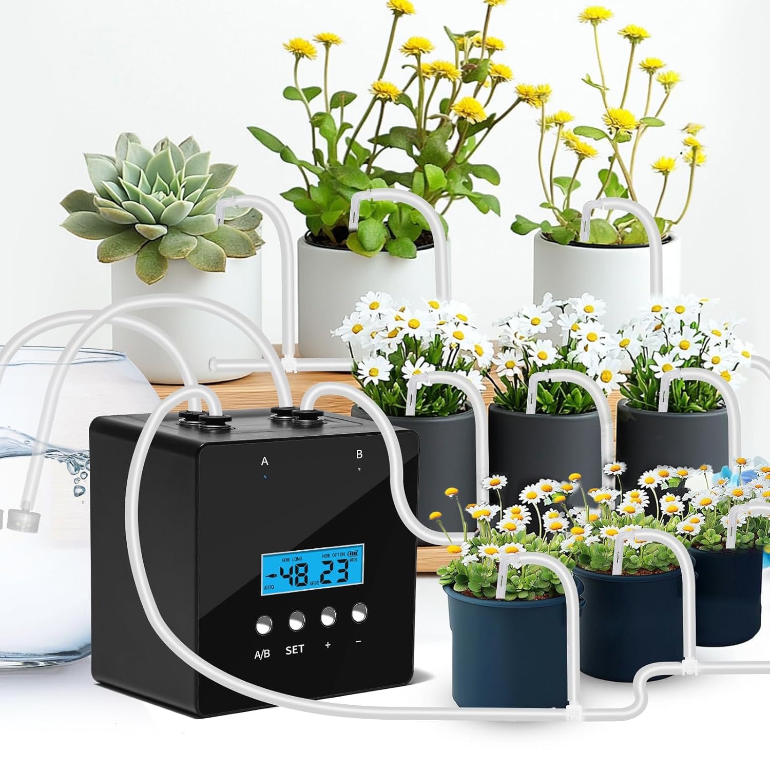 【 Powerful Water Pump 】This plant irrigation system is equipped with two separate pumps that water potted plants in groups.Equipped with 20 watering posts and taking care of 20 plants at the same time. Embrace convenience, cultivate your plants flourish in an unprecedented fashion.