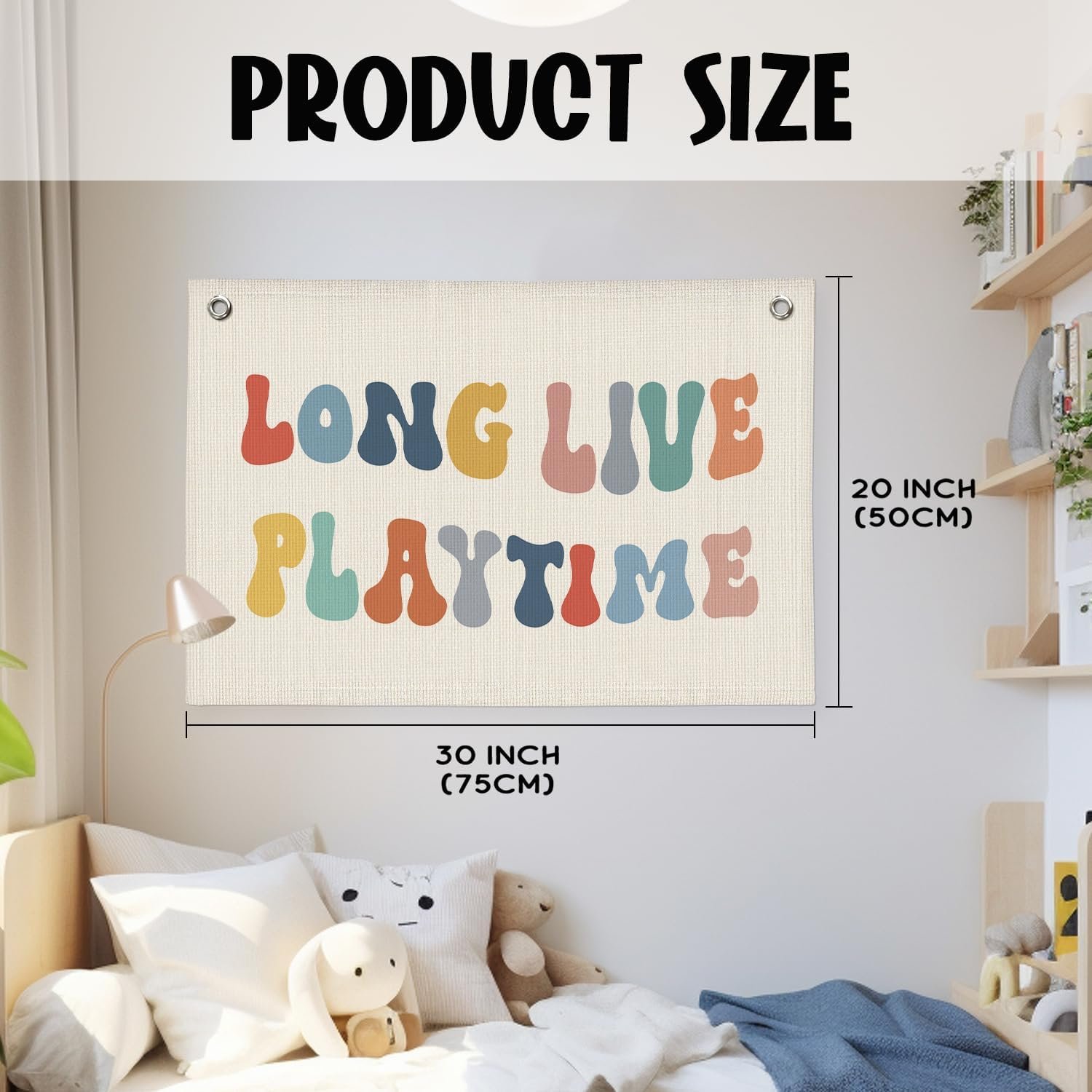 Kids Room Decor: Add a vibrant touch to your playroom or nursery with our 20×30 inch linen banner. Designed for modern minimalist homes, it enhances your kids’ room decor with a stylish, playful vibe.