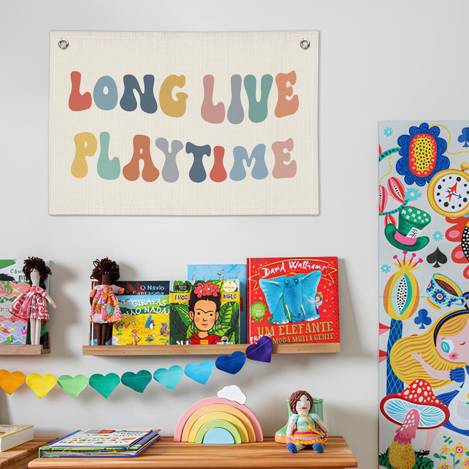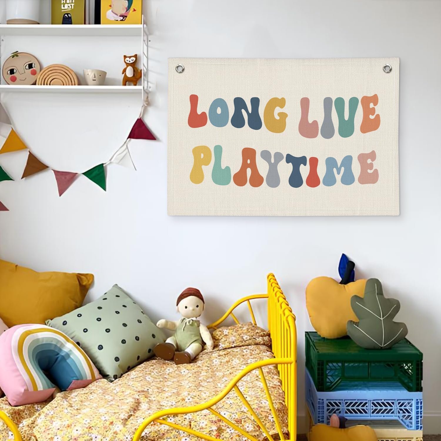 Playroom Decor, Long Live Playtime Banner, Boho Rainbow Linen Banner Wall Hanging Banner Flag Decor for Toddler Boy Kids Room Nursery Playroom