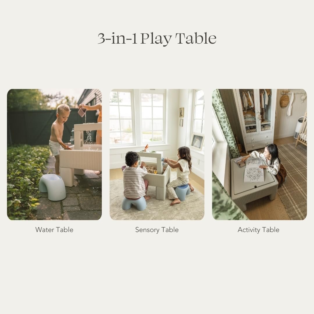 3-in-1 Kids Outdoor Sensory Table: Brings endless fun to your backyard or playroom, no matter the weather! Designed for water play, sensory exploration, and crafting—this one activity table for kids does it all.
