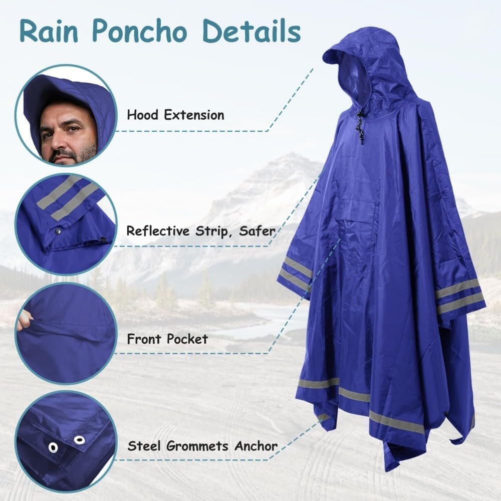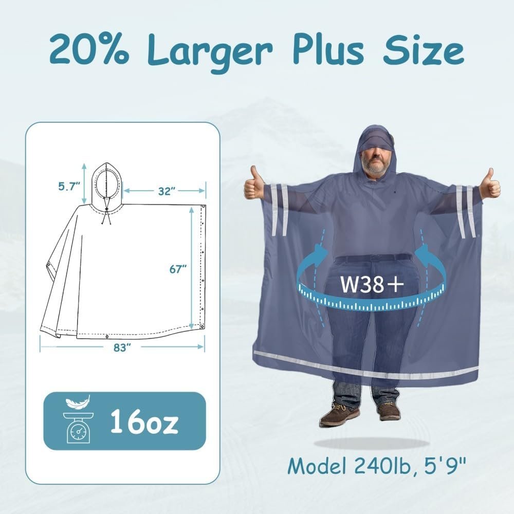 Plus Size Rain Poncho with Hood and Reflective Stripes, Big and Tall Rain Poncho, Ideal as Rain Ponchos for Adults