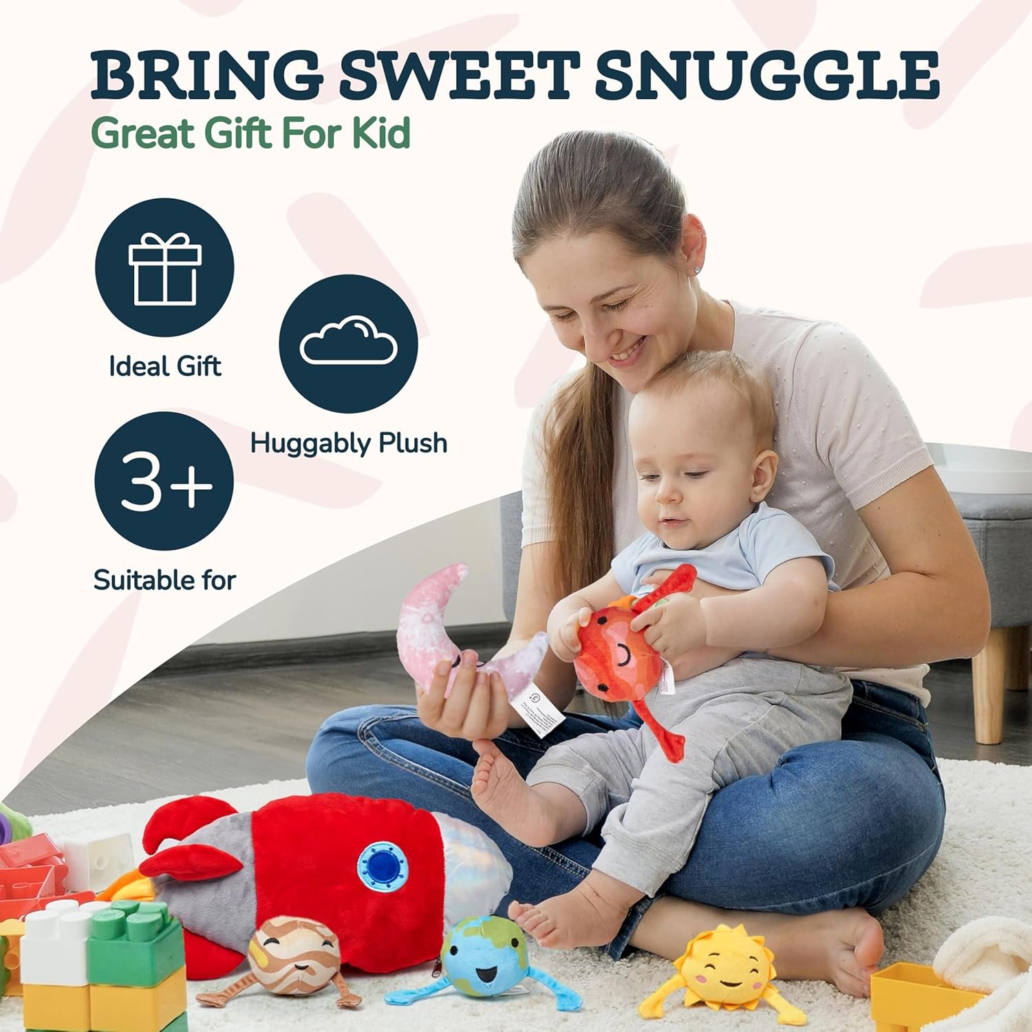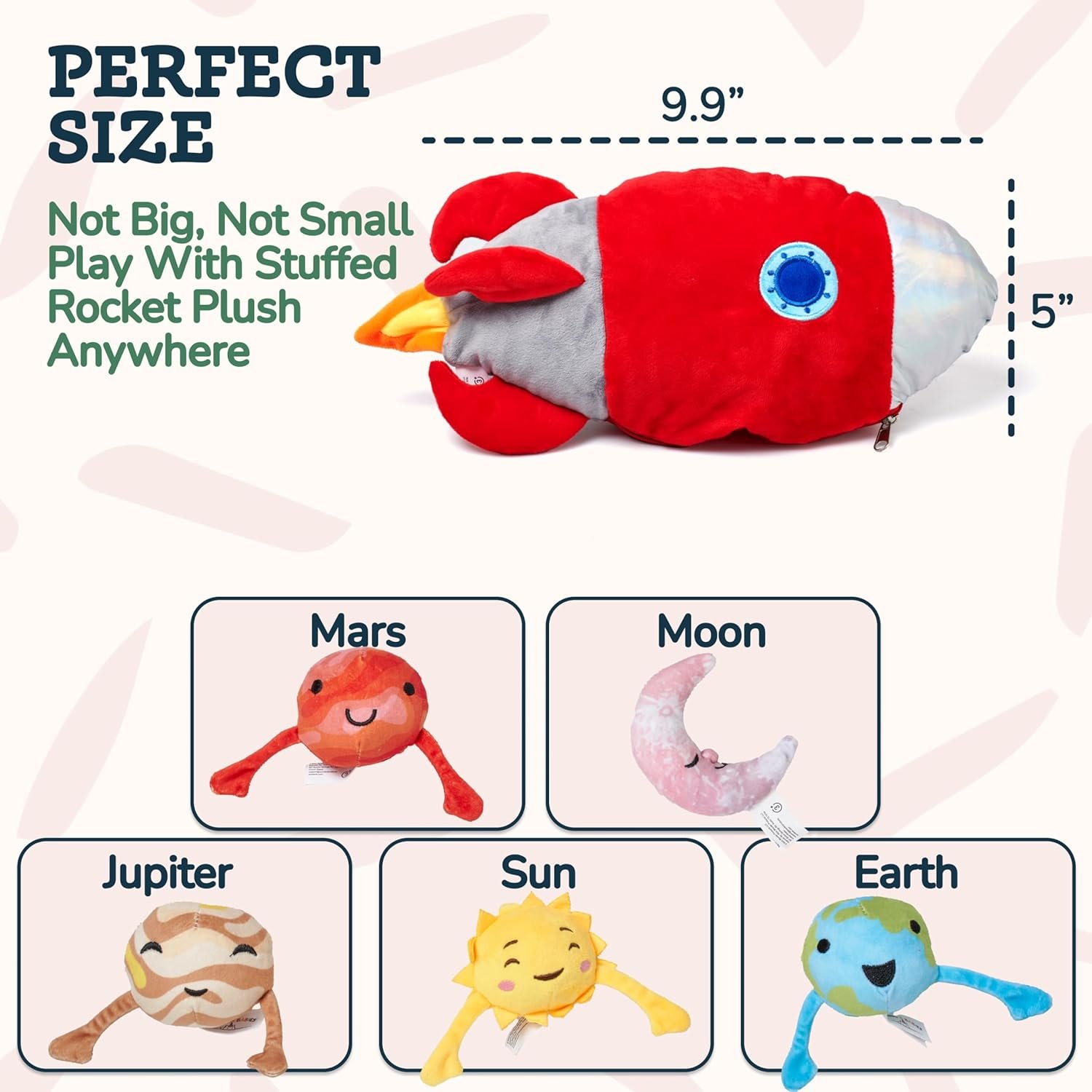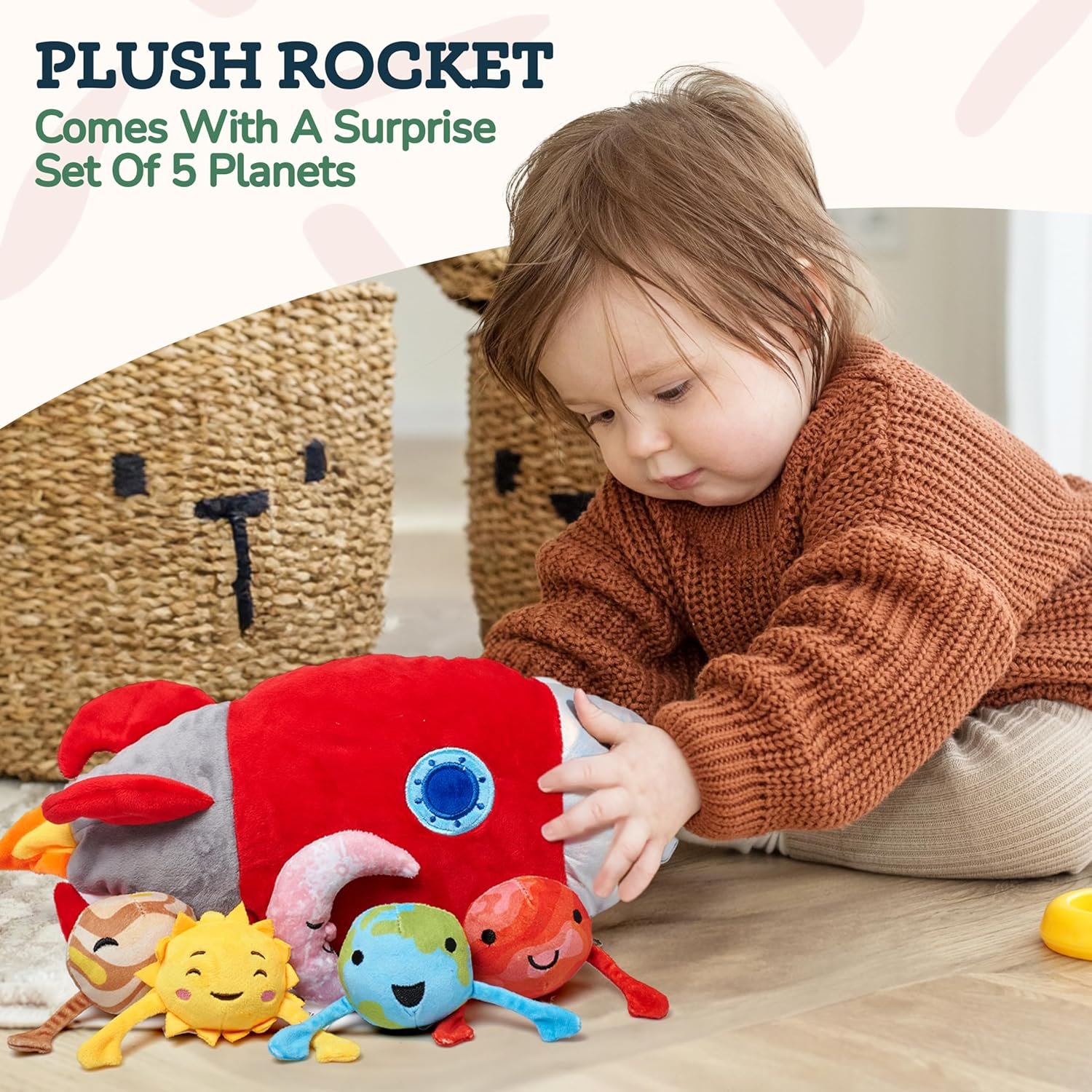 Educational Fun: Engage your child’s imagination with this set of plush planets and rocket – perfect for interactive learning about the solar system