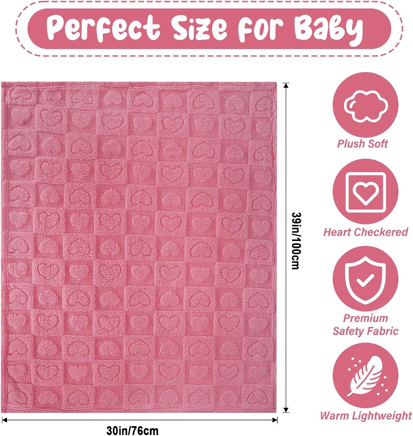 Plush Soft with Heart Checkered Baby Blanket,Fleece Infant Toddler Blankets for Girls Boys,Warm Lightweight Breathable Newborn Receiving Blankets for Crib Stroller 30″×39″ (deep Pink, Heart)
