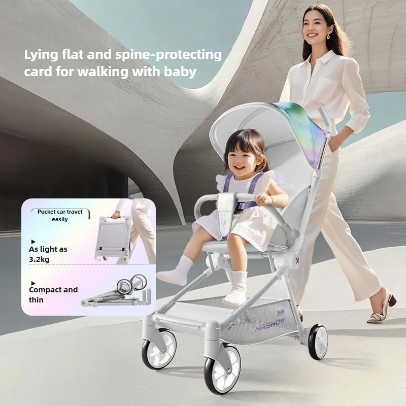 Pocket Baby Stroller Can Sit and Lie Down, Lightweight and Can Be Boarded, Baby Stroller Foldable Artifact Baby Stroller
