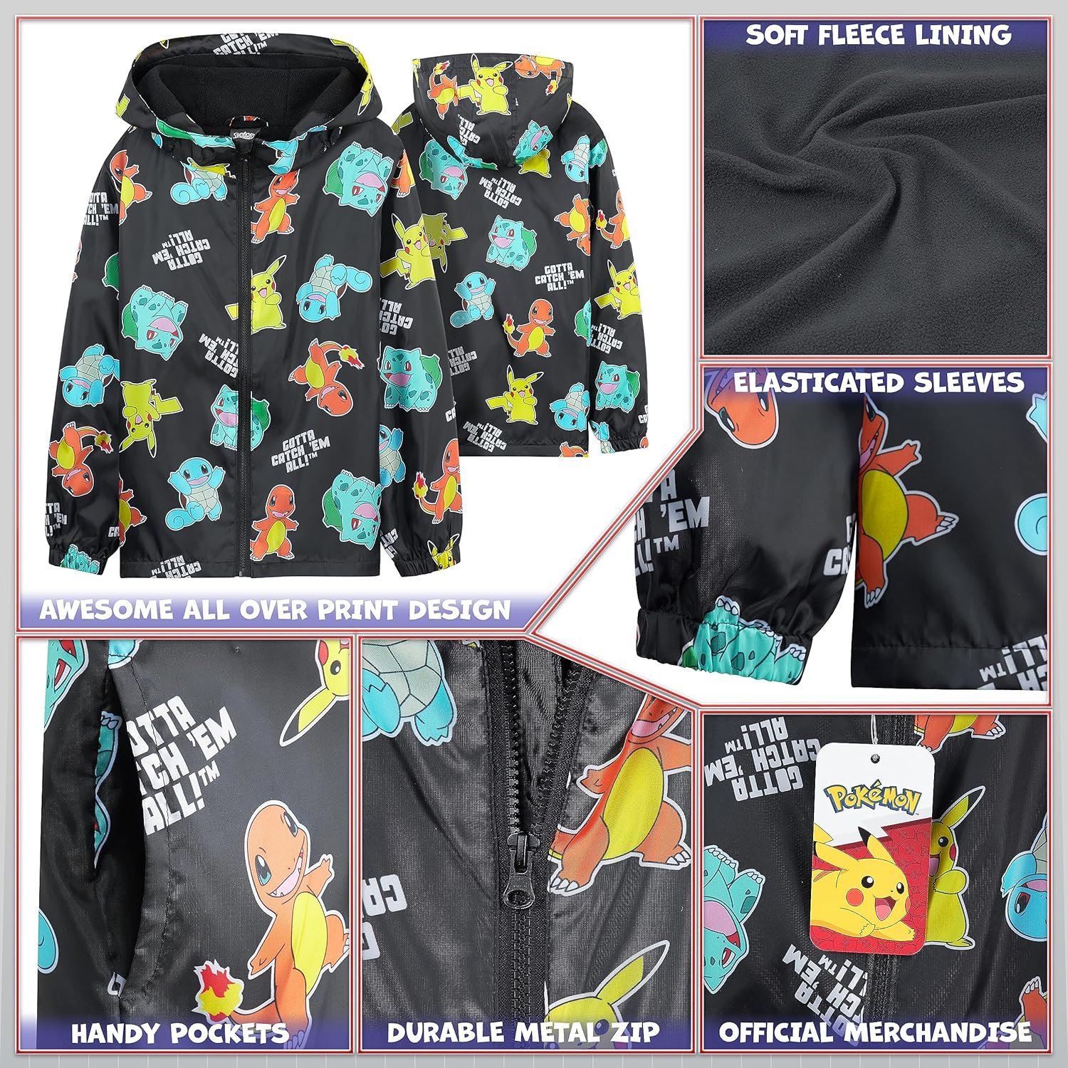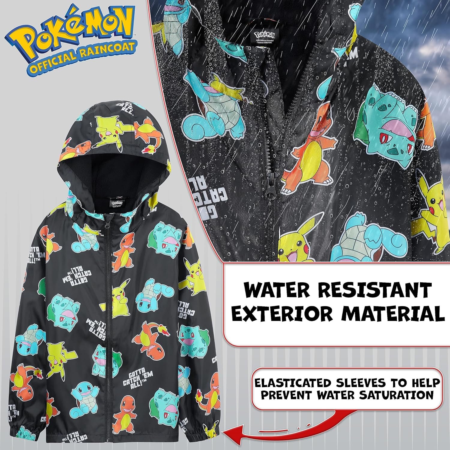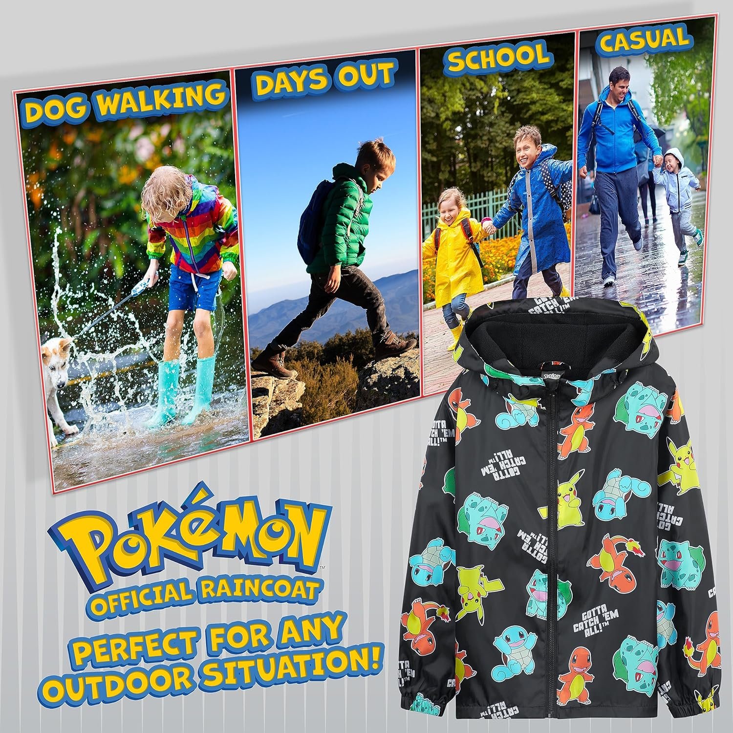 Pokemon Kids Waterproof Jacket – Fleece Lined Rain Coat – Pikachu Official Merchandise – 4-14 Years Kids