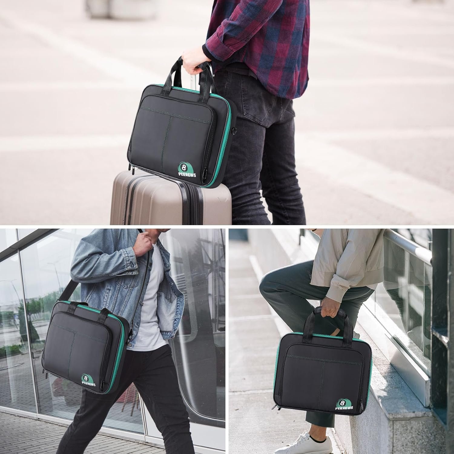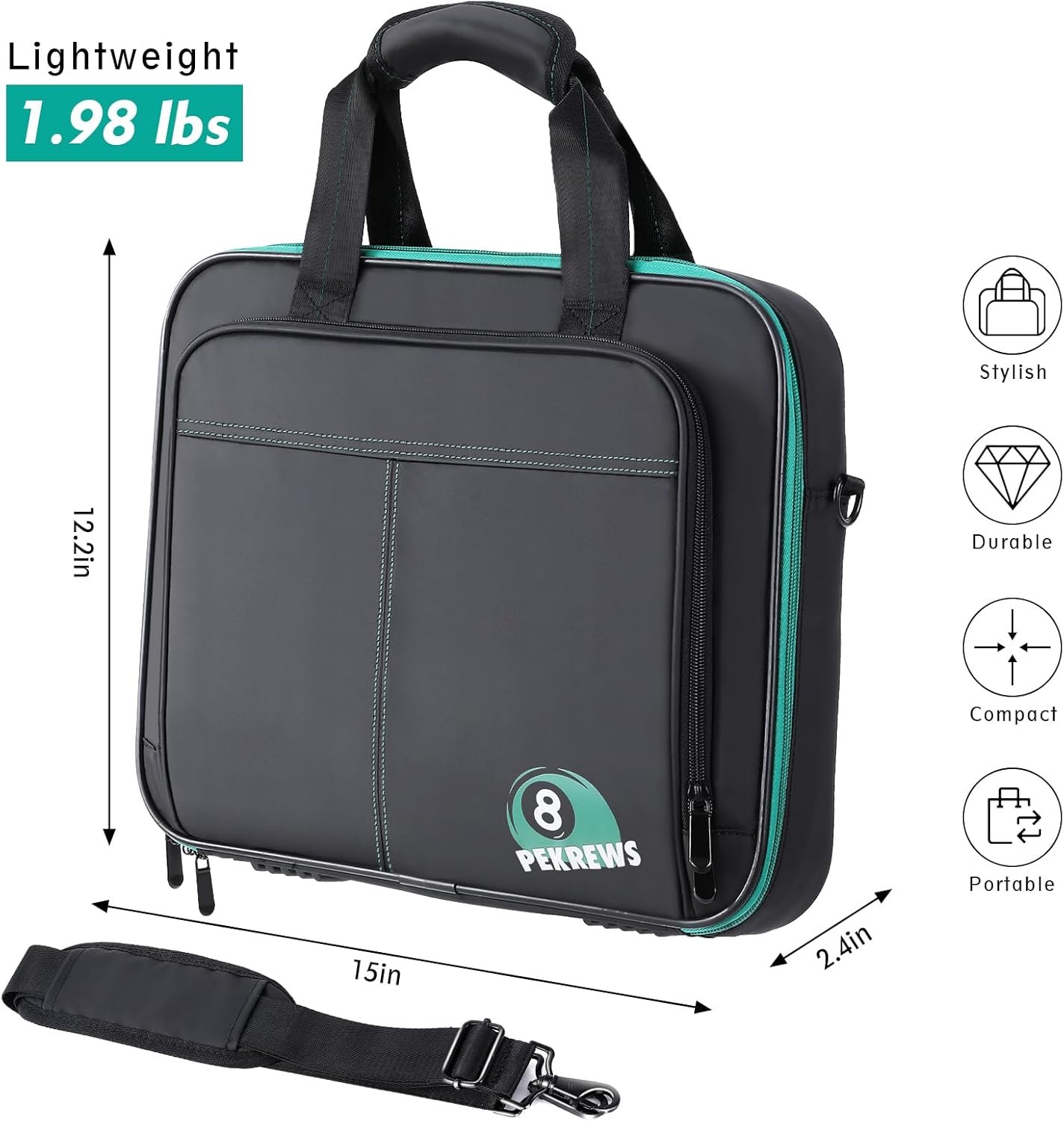 PORTABLE CARRYING: This pool ball bag can be carried in three ways, which is more convenient than carrying around the set in a cardboard box. The reliable handles come with hook-and-loop fasteners for a comfortable grip and quick access. The padded shoulder strap is adjustable and removable and has metal clips that clip onto metal rings. The back luggage strap is used for attaching the billiard ball bag to a suitcase handle, making it easier when traveling