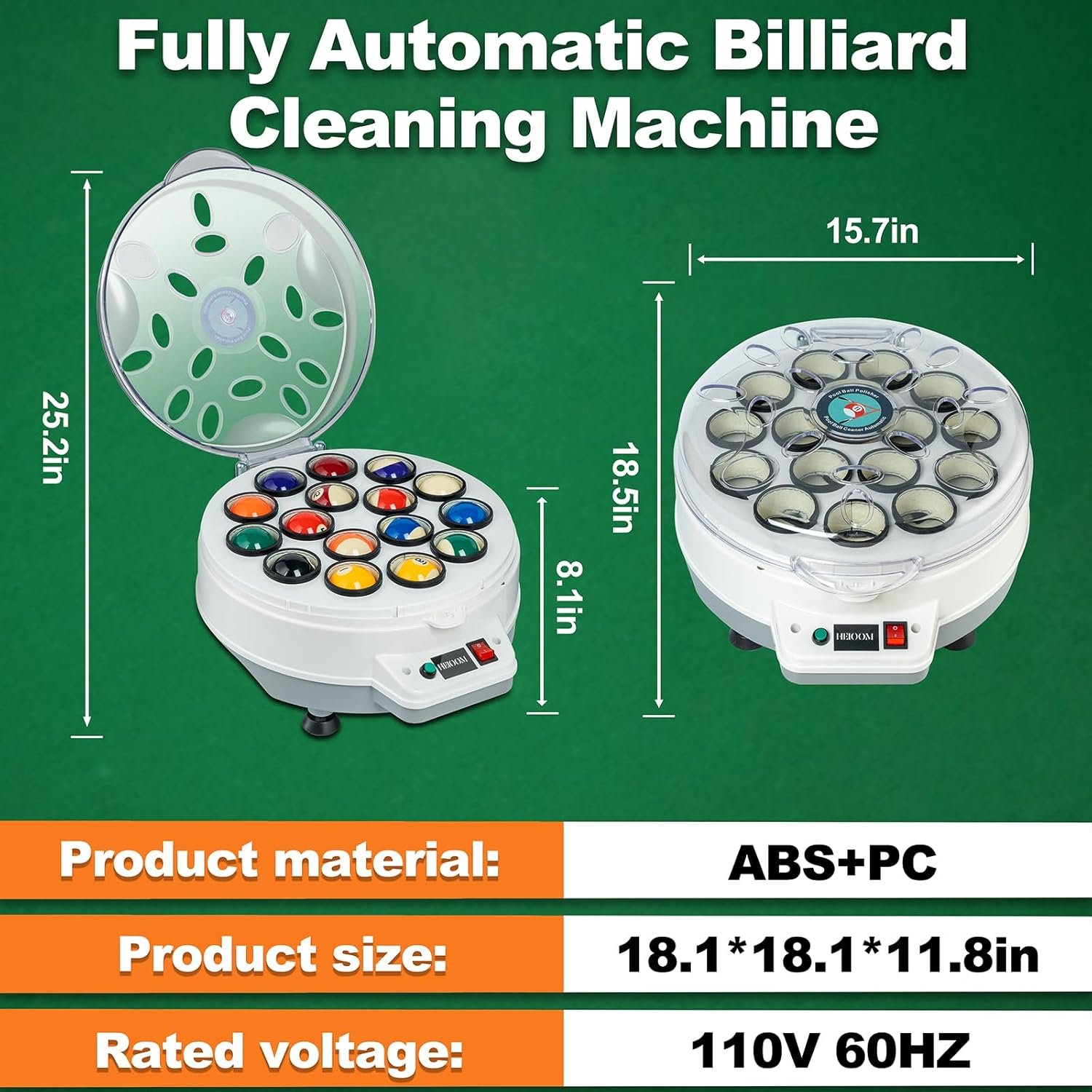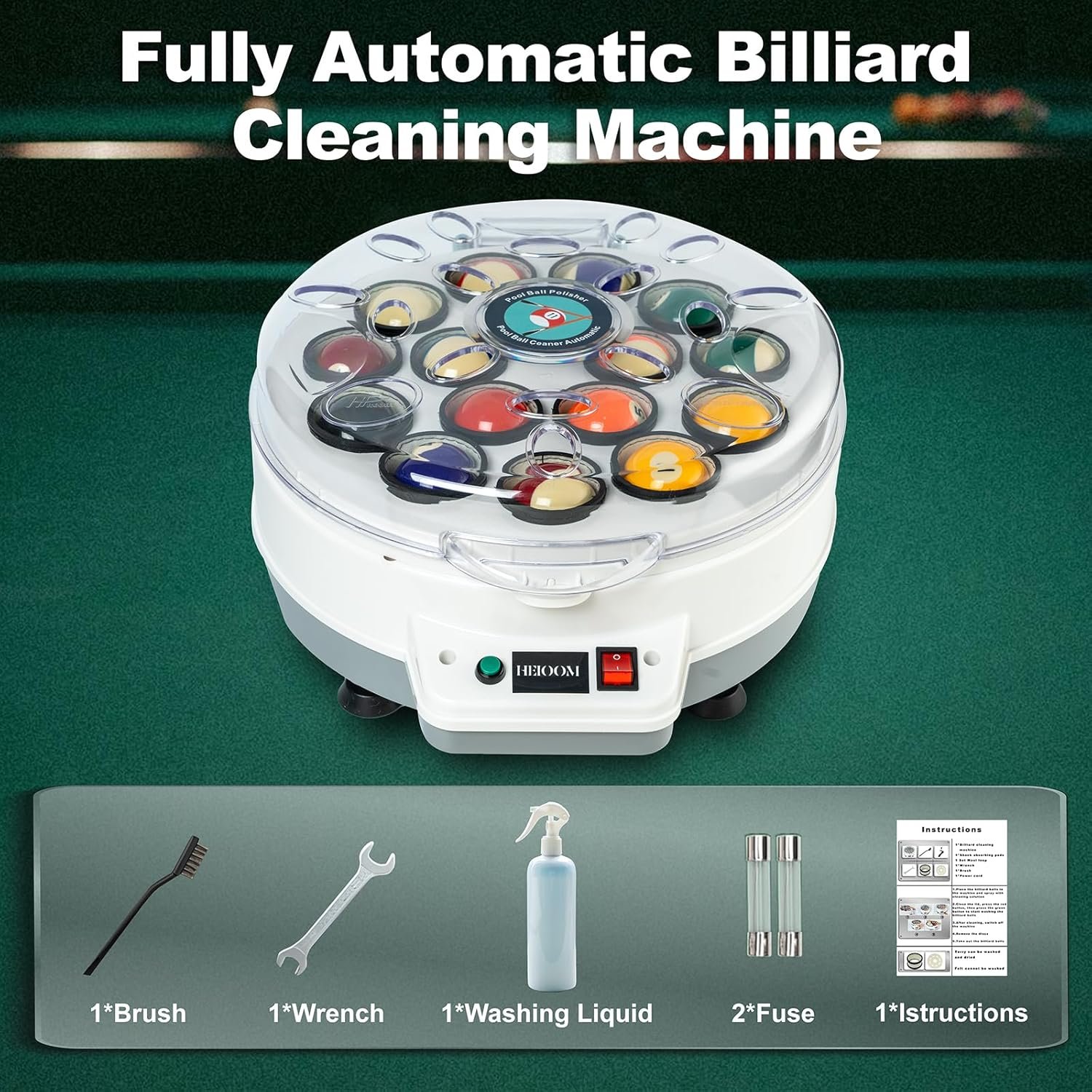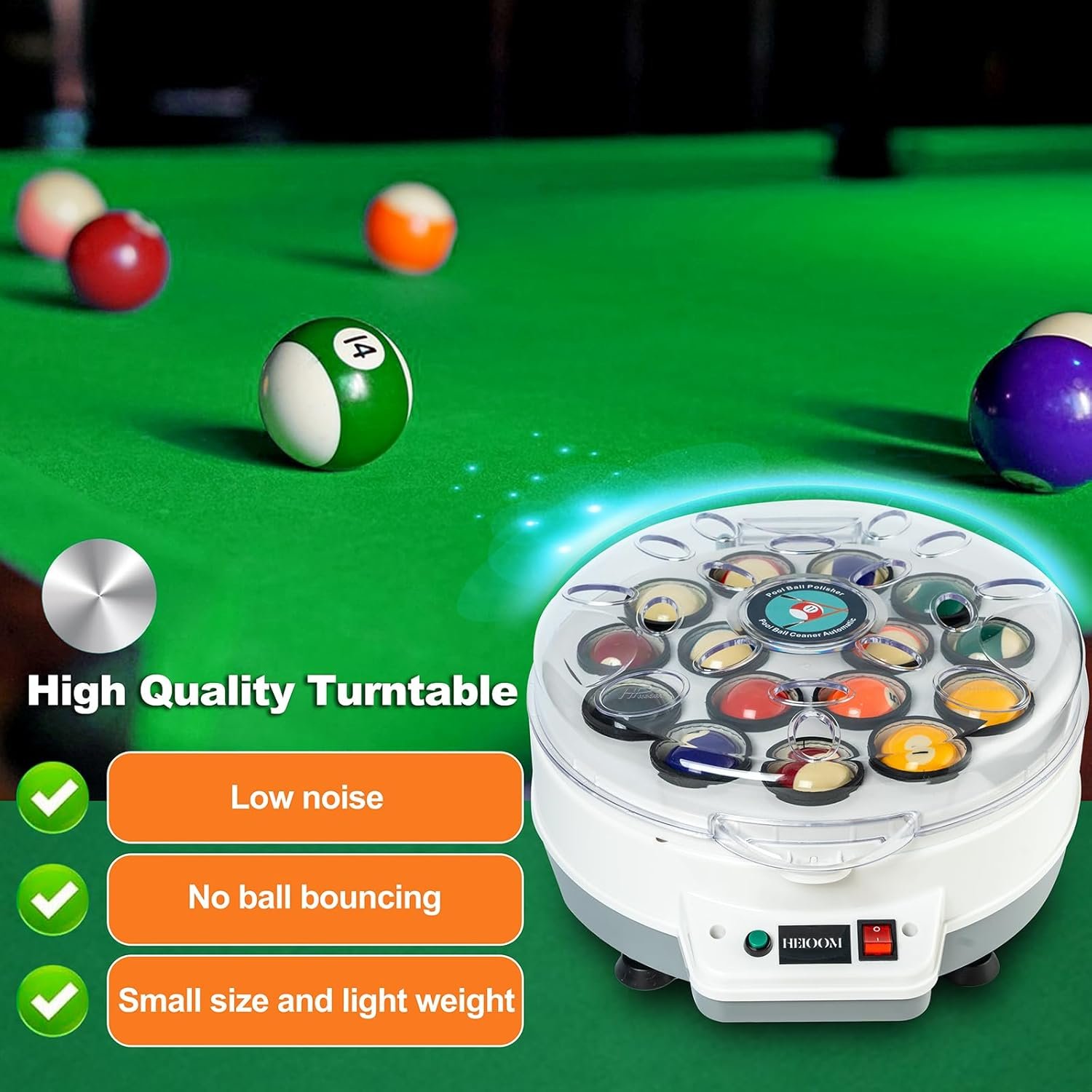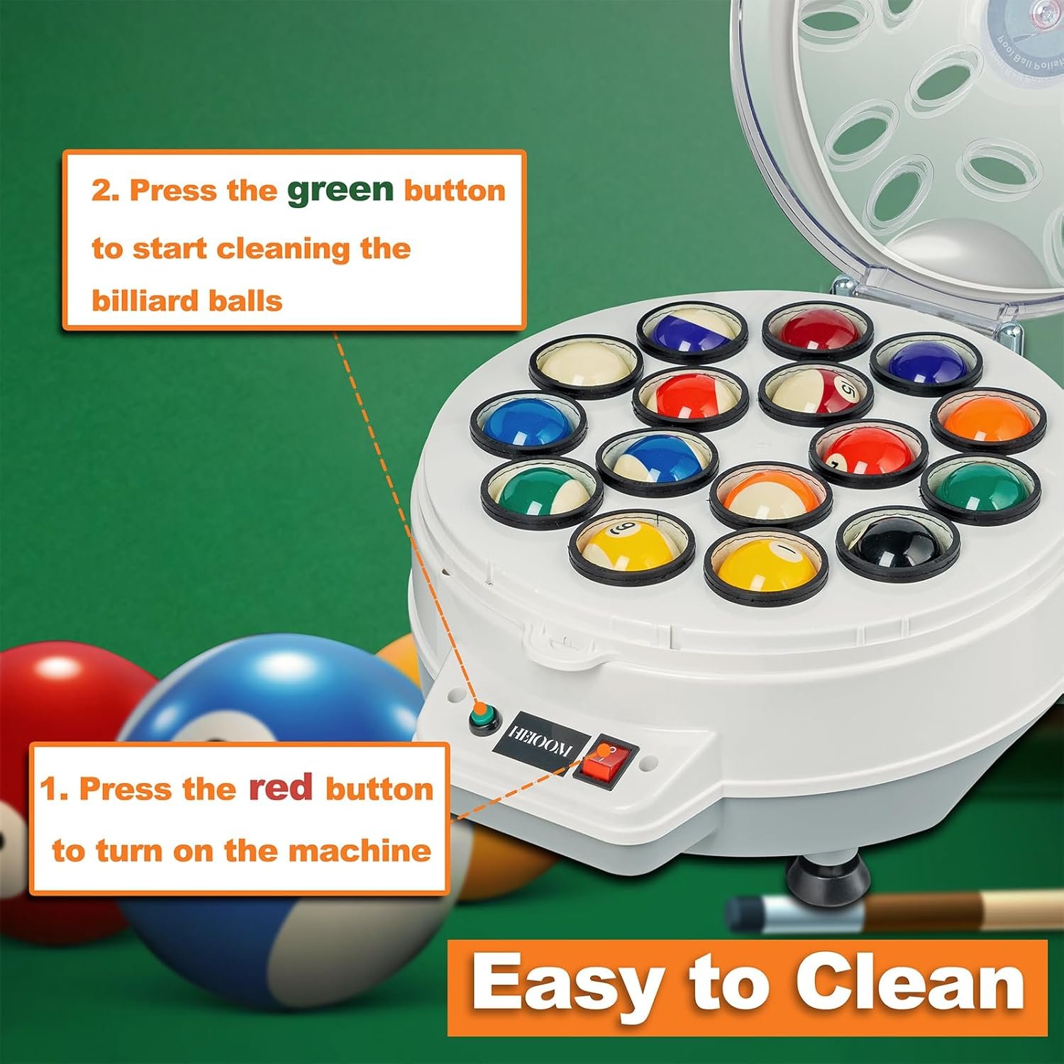 Enhanced Durability: Equipped with an oval-shaped air vent on the machine cover, our billiard ball cleaner machine ensures rapid heat dissipation and quick cooling, prolonging its lifespan. You can rely on its long-lasting performance and enjoy years of hassle-free maintenance