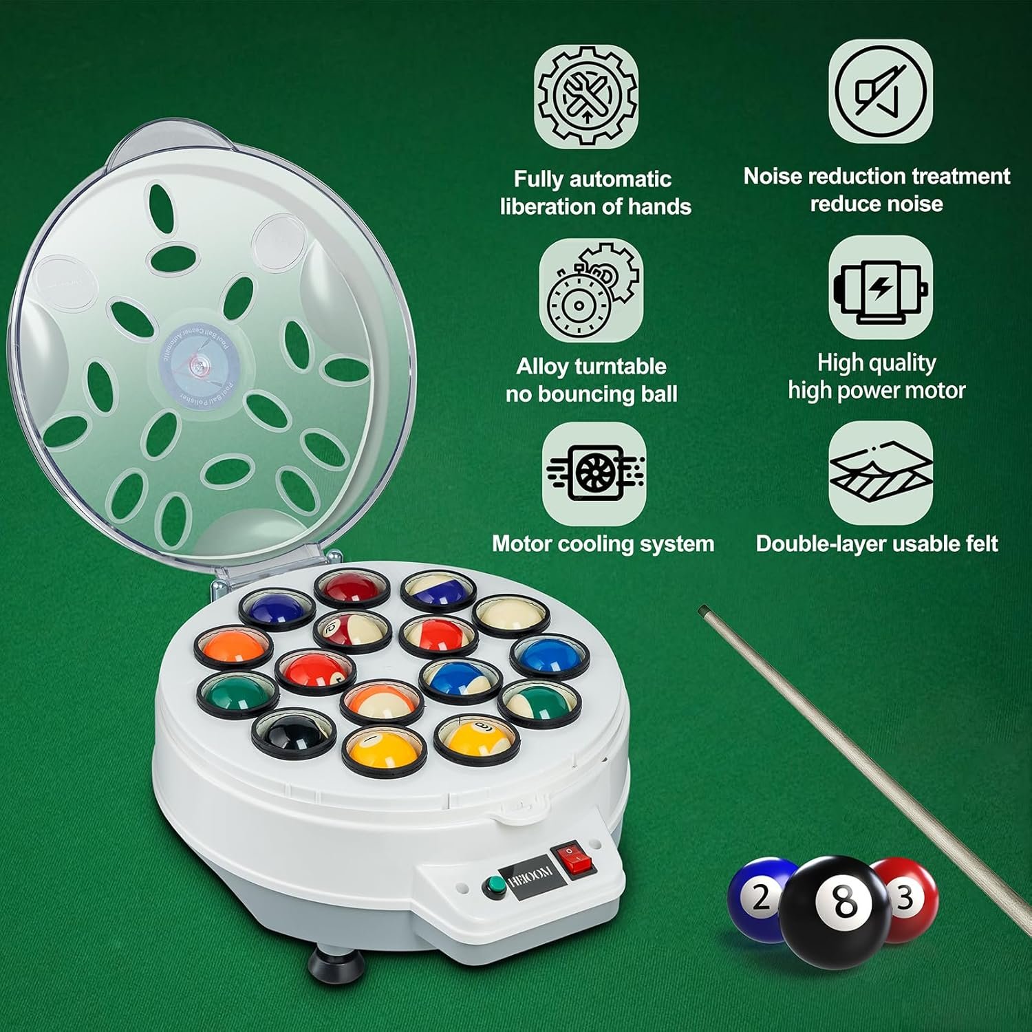 1)Transparent box cover, you can see the billiard ball cleaning process while cleaning.