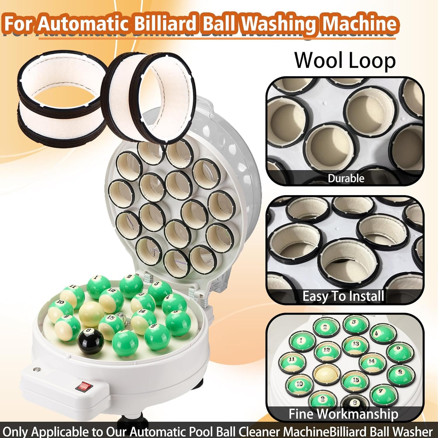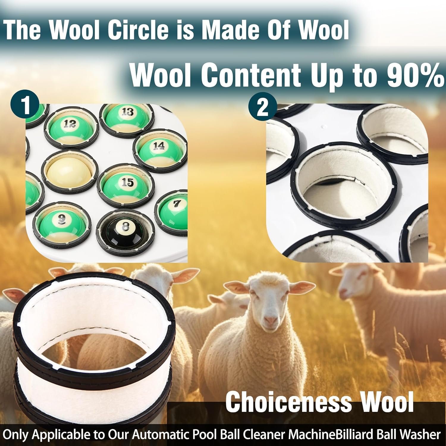 Efficient cleaning: Effectively polishes, cleans and removes dirt from billiards. This clean wool ring is an essential part of maintaining billiard equipment. (Note: Only applicable to pool ball cleaner machine in this store)