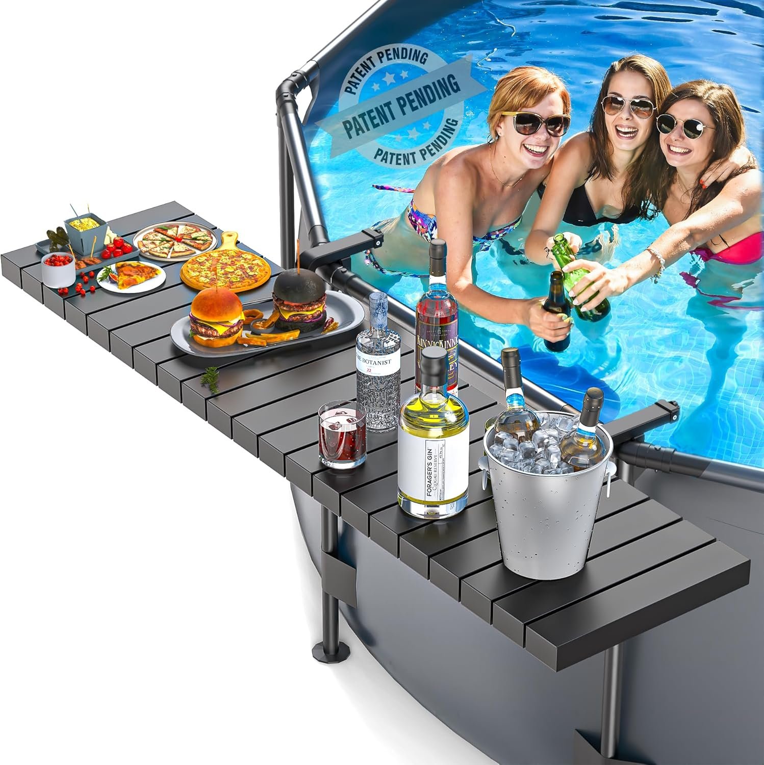 【HEAVY-DUTY & WEATHERPROOF CONSTRUCTION】Engineered with rust-proof aluminum alloy frame and UV-resistant ABS tabletop, this durable pool accessory withstands sun, rain, and chlorine splashes. Holds 110 lbs without sagging – safely support drinks trays, beach bags, or even a poolside laptop workstation.