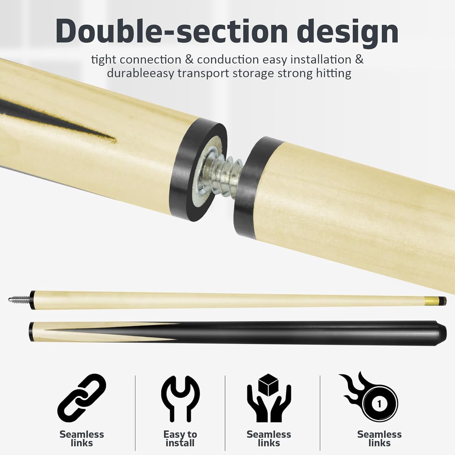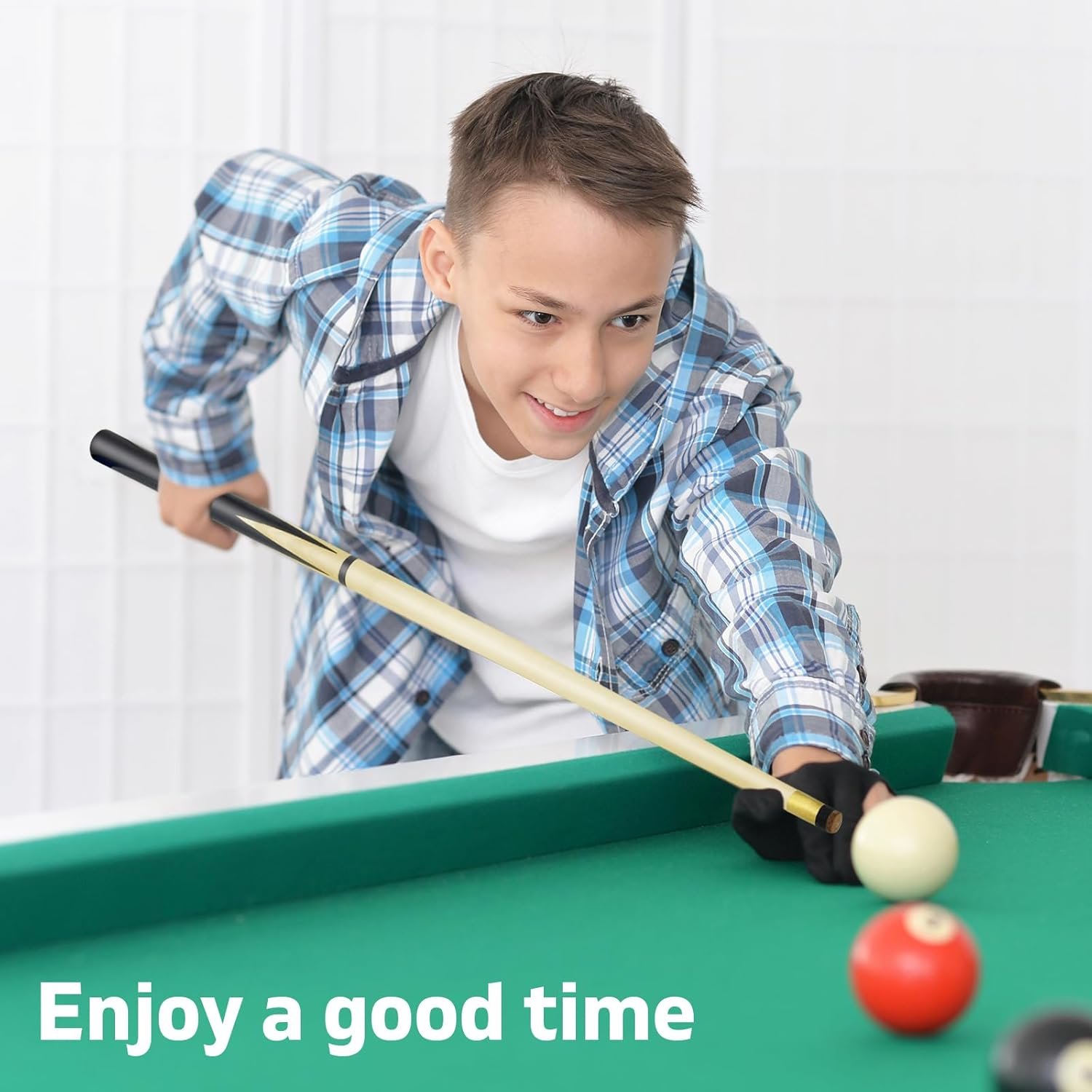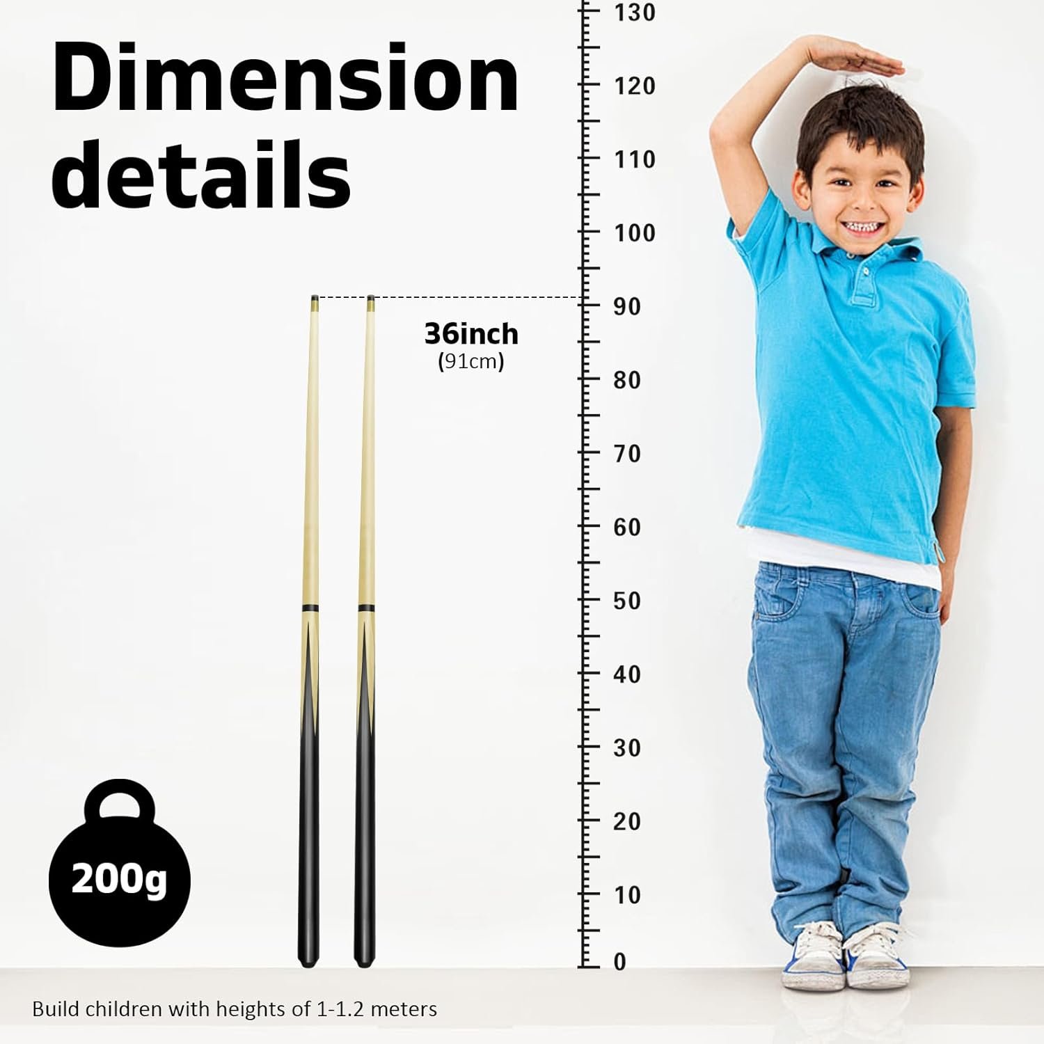 Economical kids pool cue sticks! 36 inch pool stick is made of high quality ash wood, lightweight yet sturdy. You will get 2 set of 36 inch pool cues.