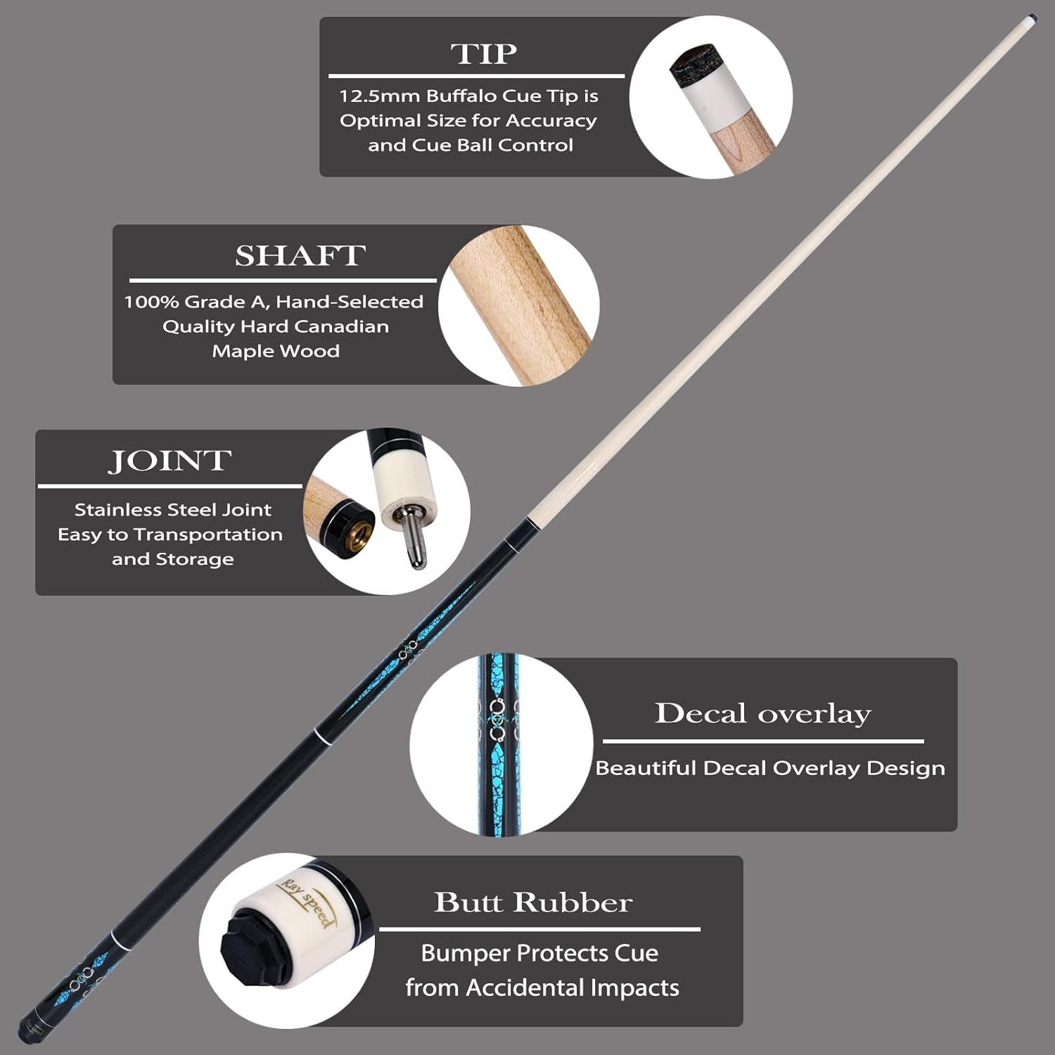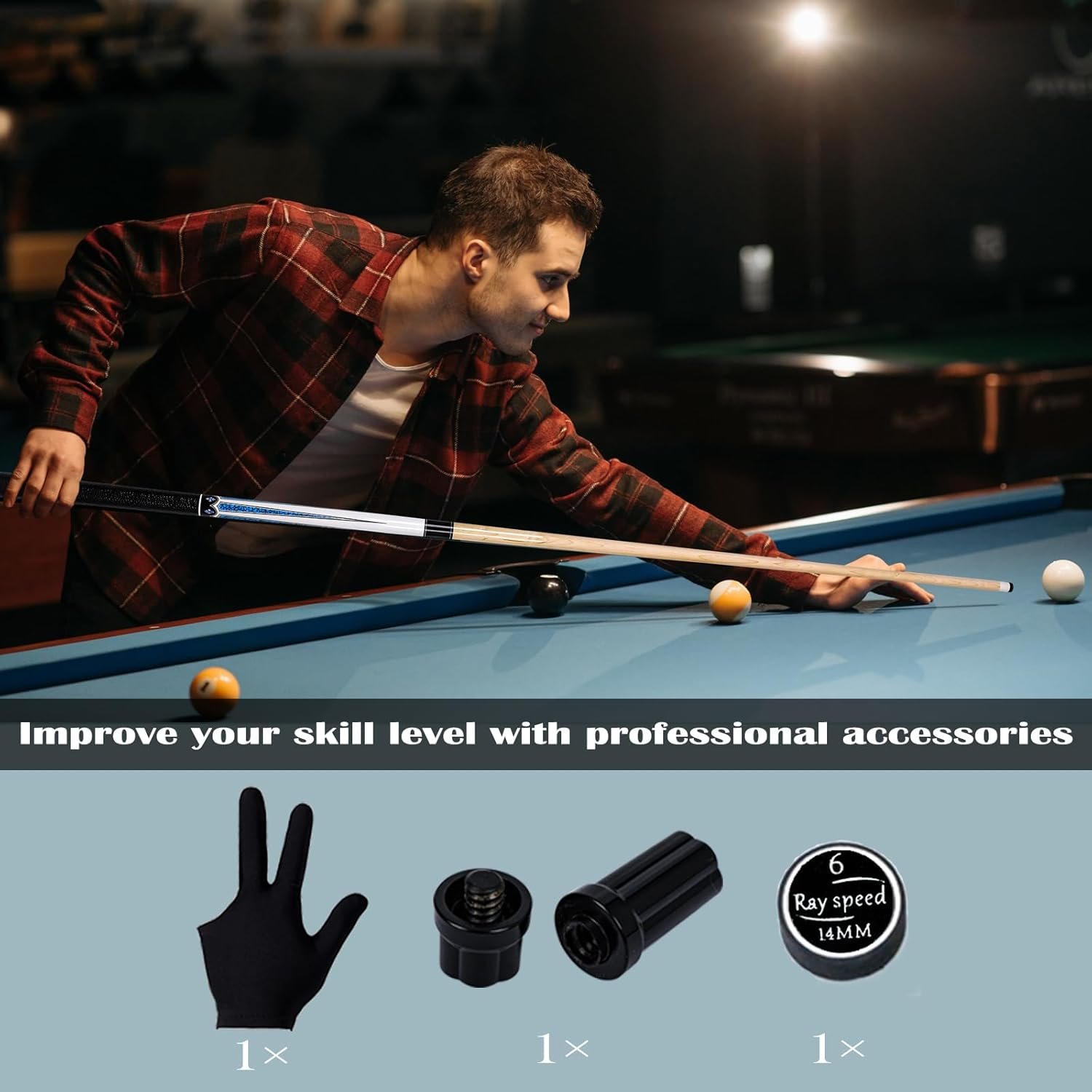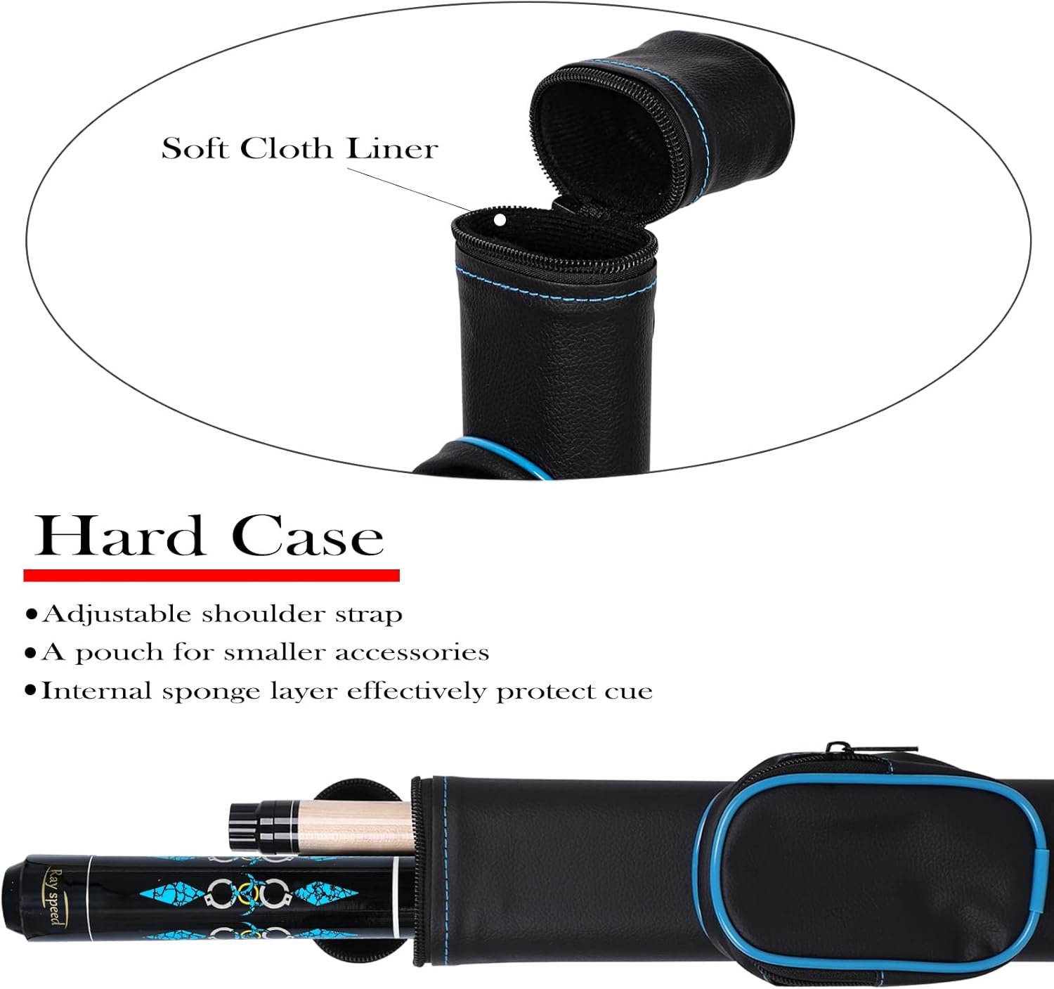 【WHAT YOU GET】Pool Cue come with Hard Cue Case, Joint Protectors,1 billiard cue tip and 1 gloves