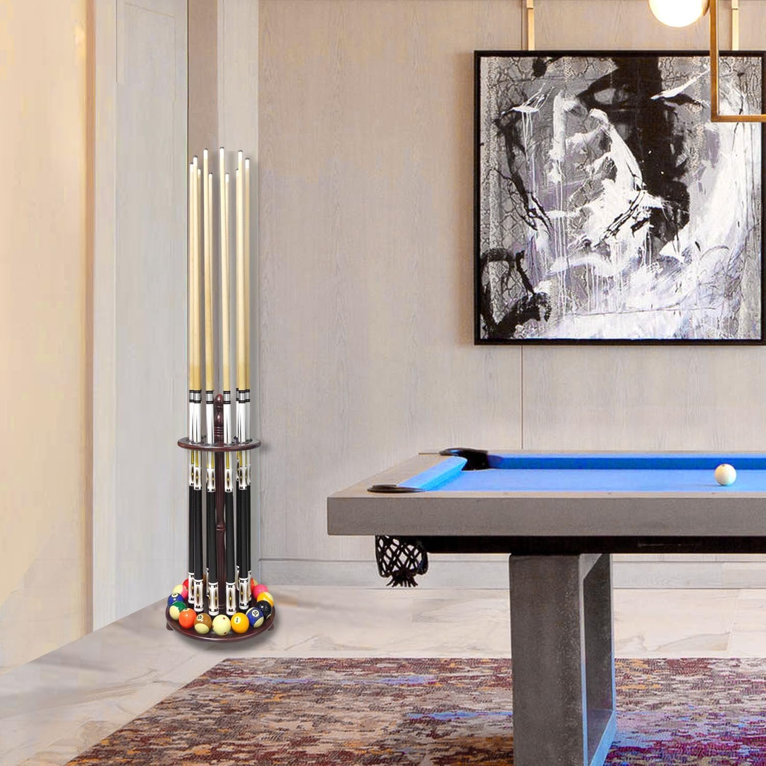 Pool Stick Holder Billiard Cue Rack Holds 10 Sticks Floor Stand,Burgundy