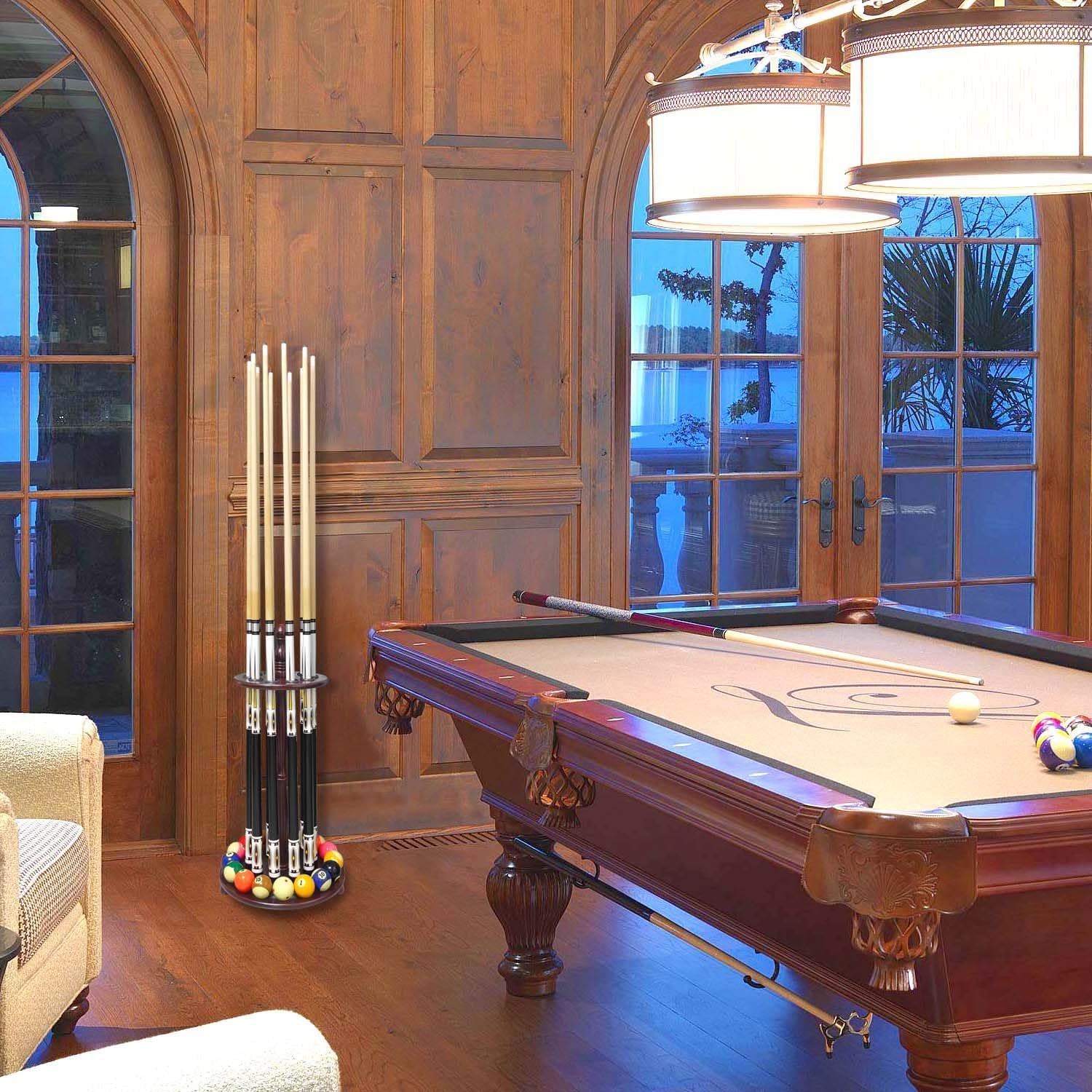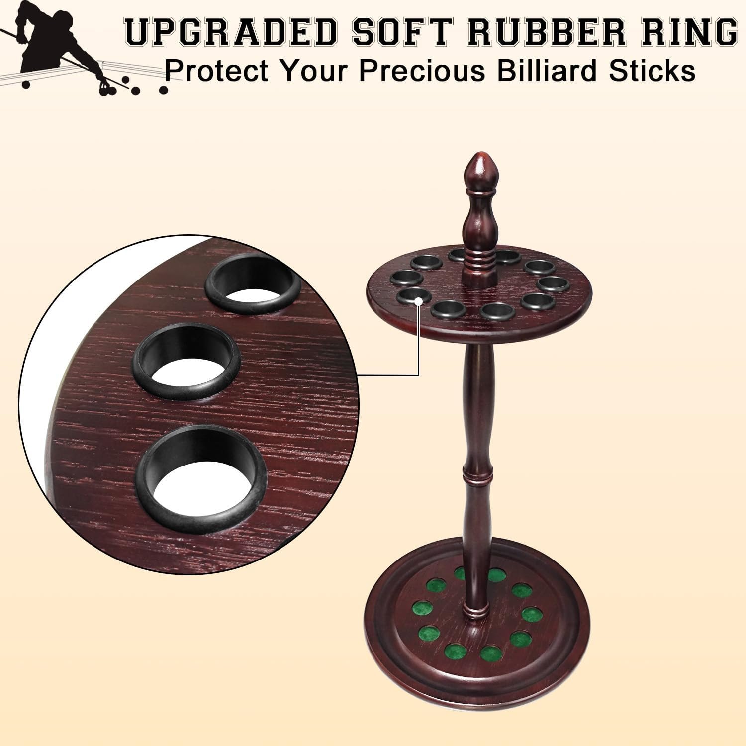 MAKE YOUR EASY ACCESSY TO POOL STICKS: Designed to accommodate up to 10 billiard sticks, this cue stand keeps your favorite cues neatly organized and easily accessible whether for use at home, tournaments, or in bars. The rubber rings ensure a smooth and scratch-free placement for your precious pool cues, providing added protection.