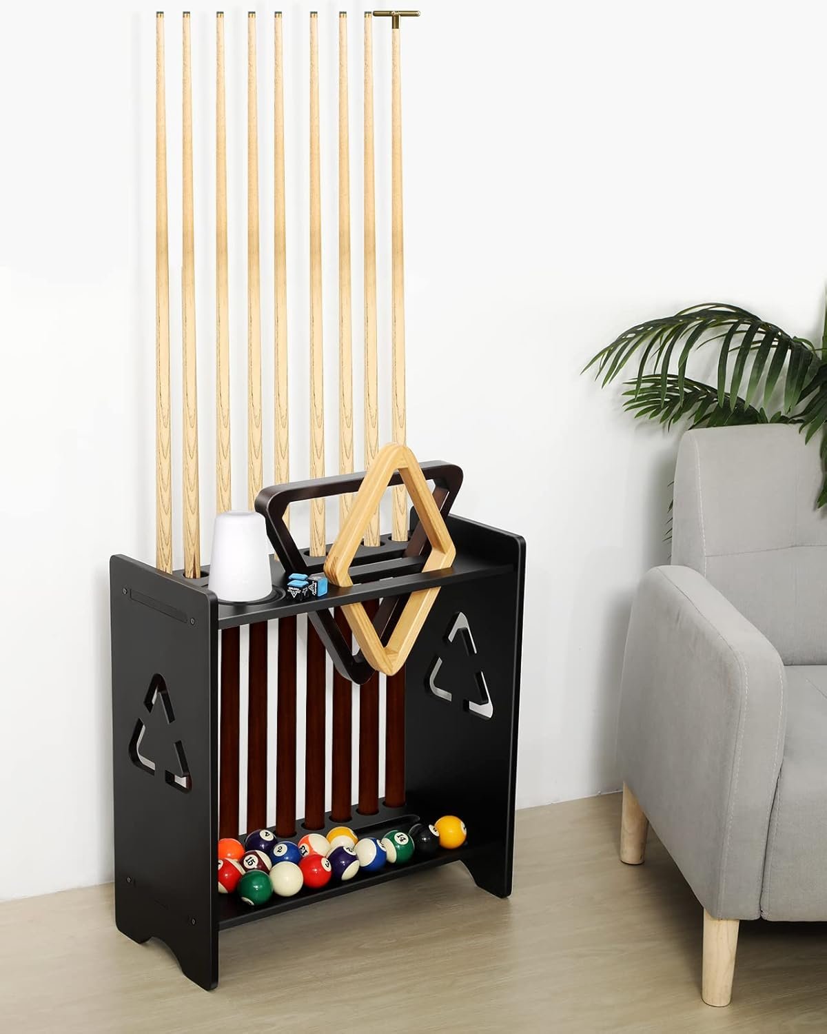 KEEP GAME ROOM ORGANIZED – Whether playing pool in your home game room, club, garage, man cave, or in a bar or restaurant setting you can organize your billiards cues and balls with this pool stick holder floor stand. If you do, that will definitely give your pool room a nicer and more professional feel.