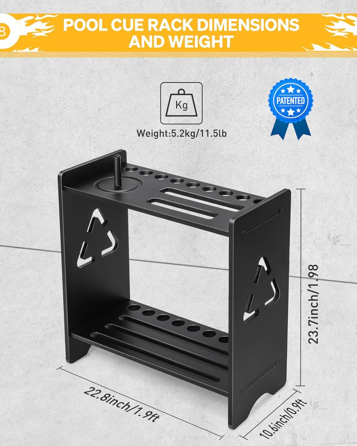 STURDY & DURABLE – The pool stick rack is made of 100% solid wood, sturdy and durable. Product Size 22.8″L x 10.6″W x 23.7″H 11.5lb. Great looking and well built. Pool stick holder floor stand, No need to damage the wall by punching. Impress all your buddies with nice looking stylish eye-catching pool rack holder.