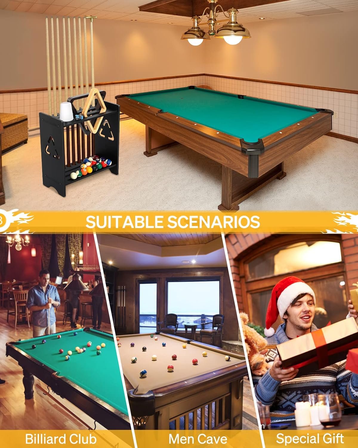 FRIENDLY CUSTOMER SERVICE – This pool cue holder is especially suitable as a Birthday, Housewarming gift for husband, friend, and yourself. We commit 2-YEAR HASSLE-FREE WARRANTY with replacement or money back, friendly service will be there for you.