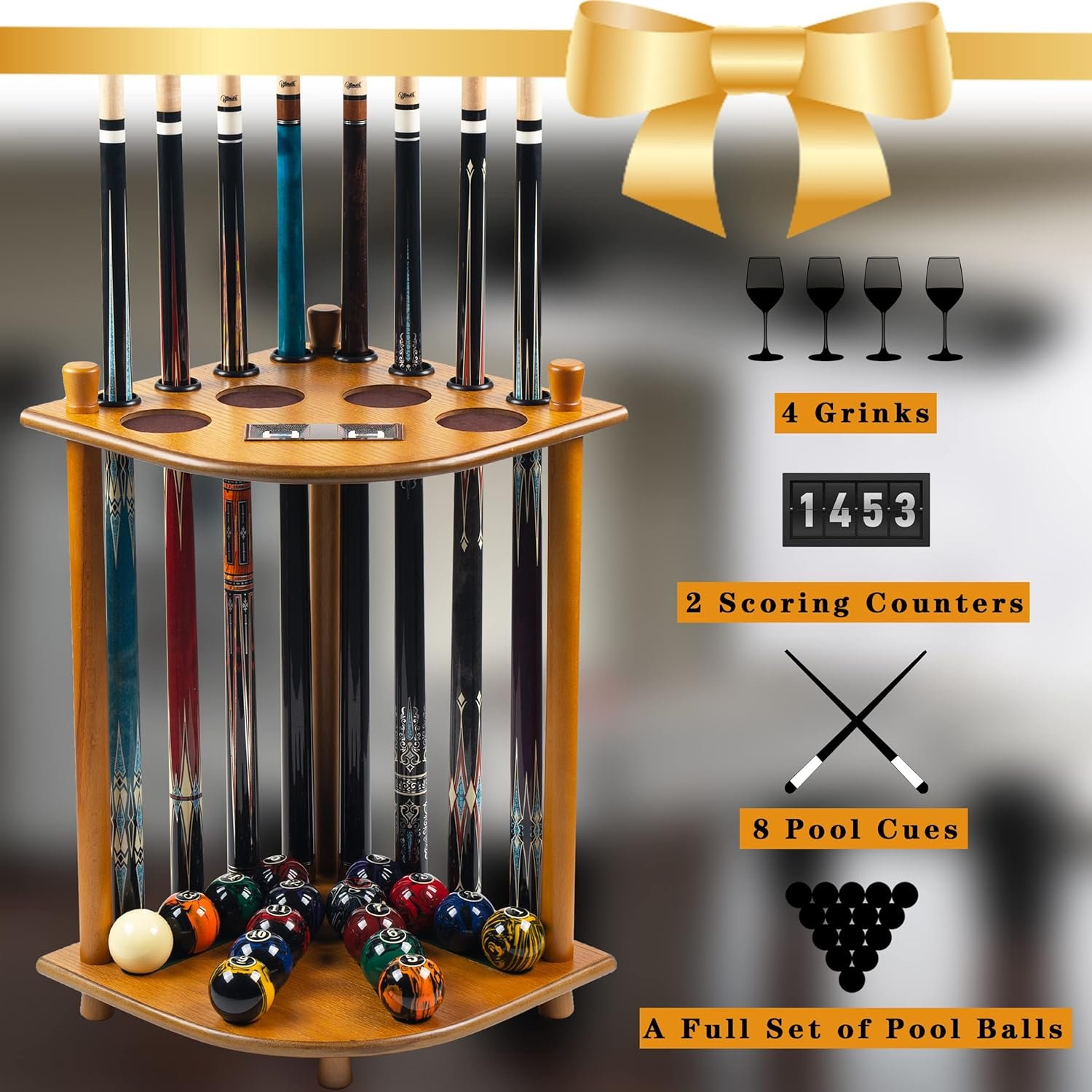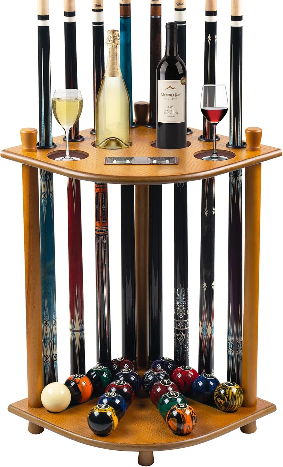 FULL SET SUPPORT – The Classic billiard accessories storage rack features for up to 8 cues and a full set of pool balls, excellent storage for 4 drink holders. Keeps pool table accessories organized.