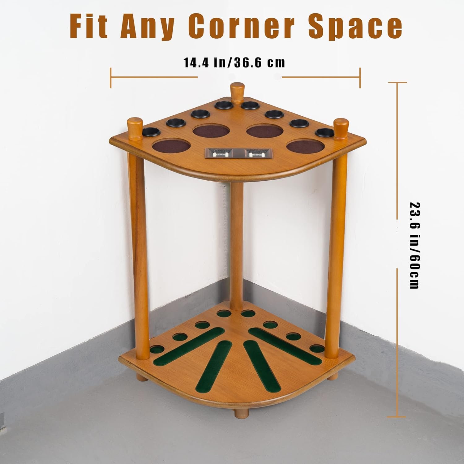 CORNER DESIGN – The pool stick holder floor stand is design for the triangular, perfect for the corner space, which not only can save space but stand on the floor most stably, without worrying about falling down.