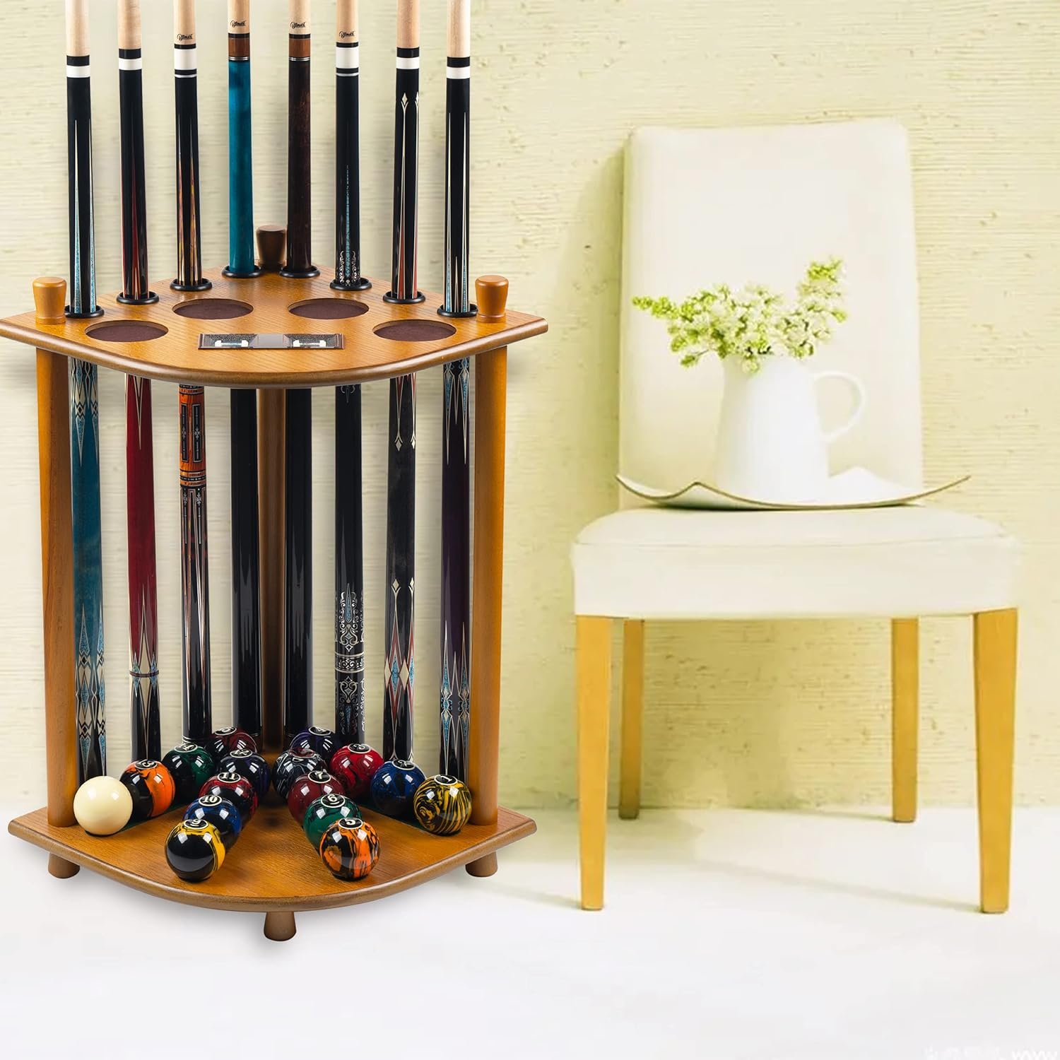 Pool Stick Holder Floor Stand, Solid Wood Billiard Pool Cue Rack, Pool Table Accessories (OAK)