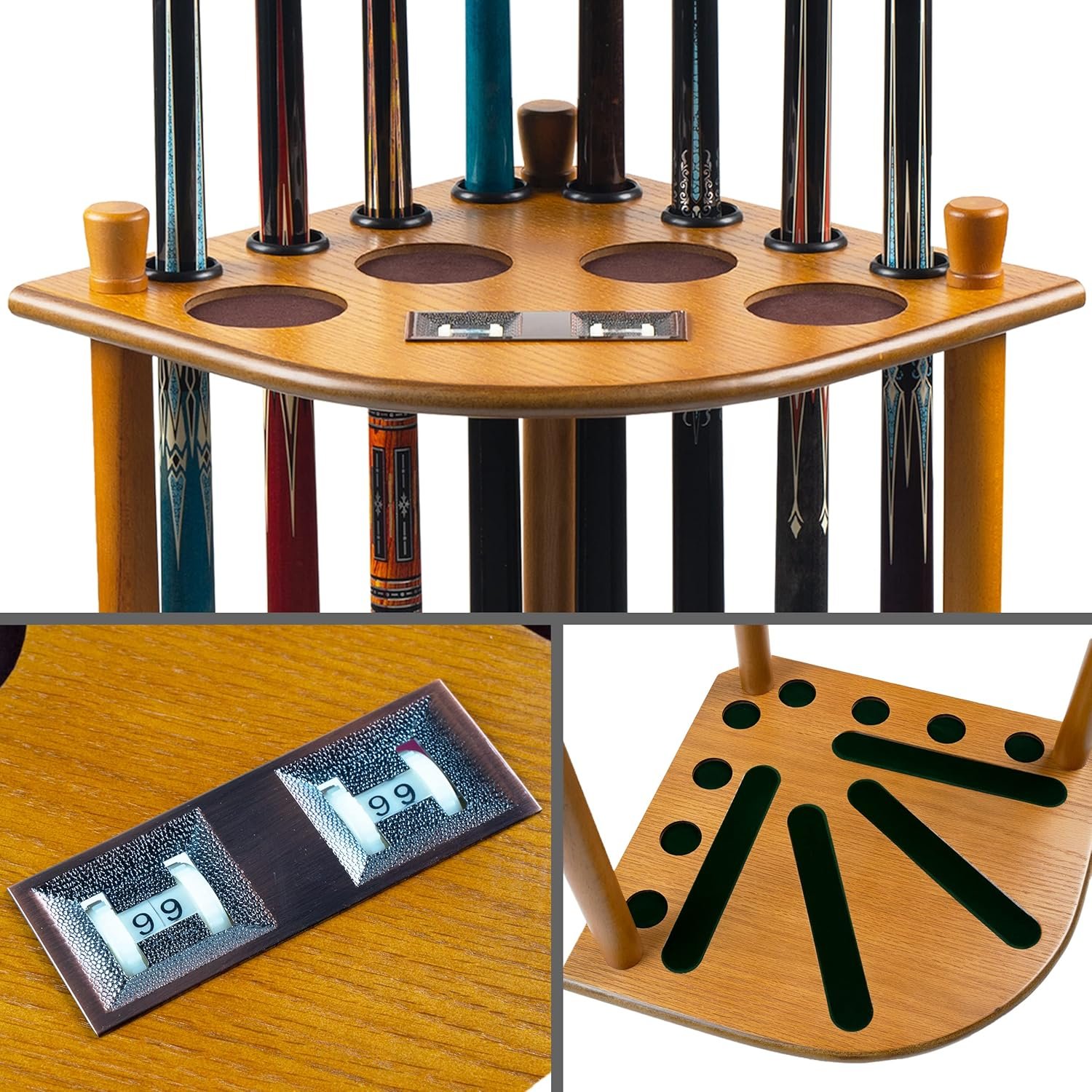 100% SOLID WOOD STRUCTURE – Billmart pool cue holder is made of solid wood and stained into Oak finish, sturdily built and durable.