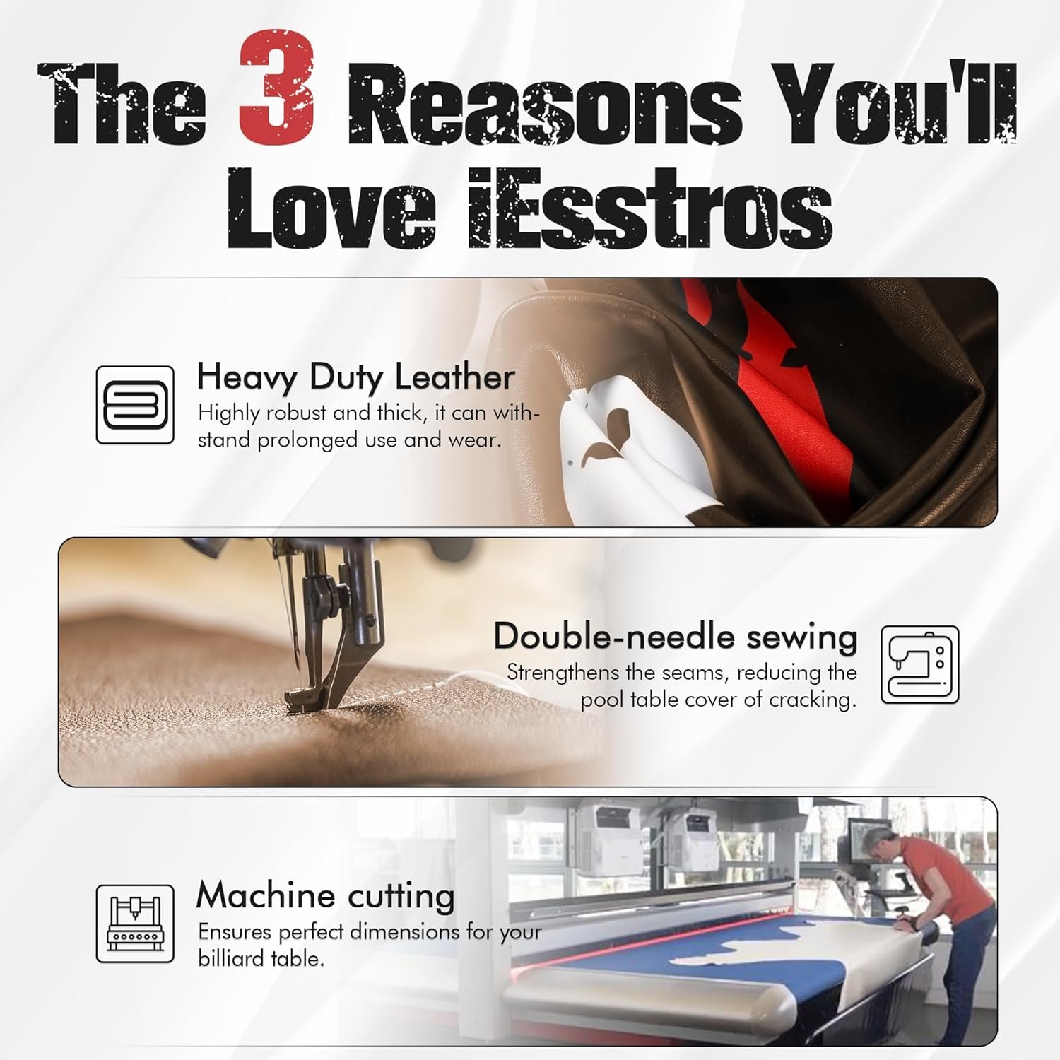 【Hight Quality Material】This cover is made up of three different materials. The bottom layer is french terry, which reduces friction with the billiard cloth. The middle layer is leather, providing an excellent tactile feel. The top layer has a special waterproof coating.
