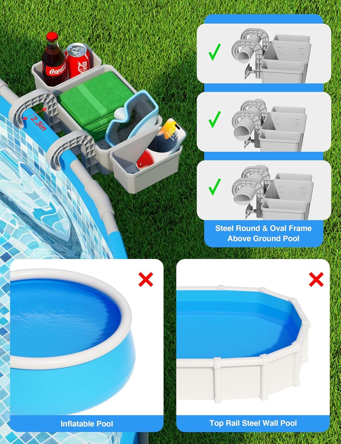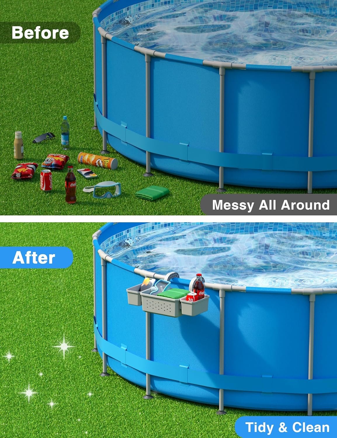 Sturdy Design: Made from thickened, high-quality plastic material, making it more durable and stronger. An extra support rod with an adjustable screw is placed under the basket, providing additional support between the basket and the pool, making it more stable. Adjust the bar to keep the basket level and prevent items from falling