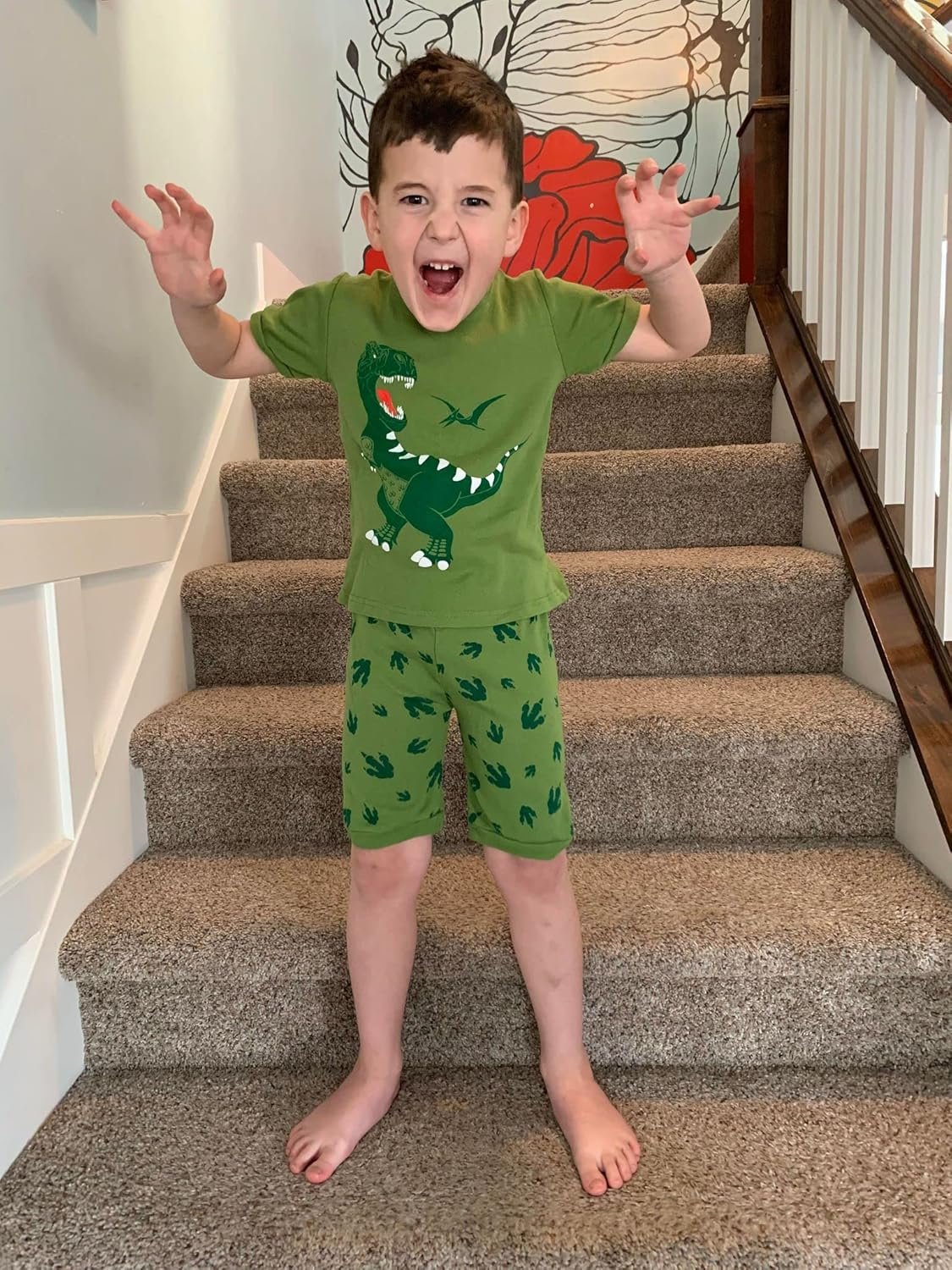 Popshion Little Boys 2 Piece Short Pajamas Train Shark Sleepwear 100% Cotton Toddler Dinosaur Pjs Summer Kids Clothes 2-7T