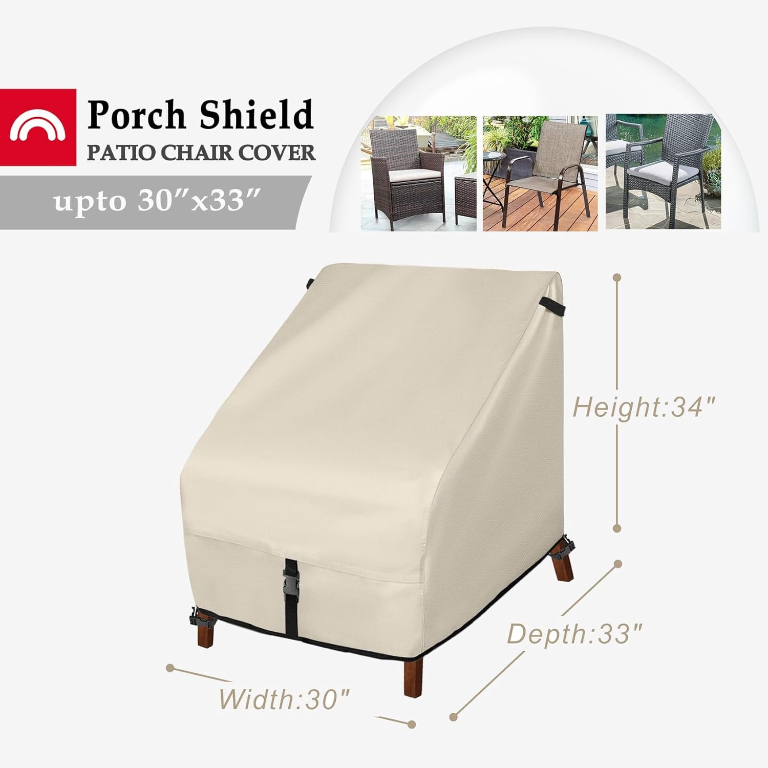 Porch Shield Patio Chair Covers – Waterproof Outdoor Lounge Deep Seat Lawn Chair Cover 2 Pack – 30W x 33D x 34H inch, Beige