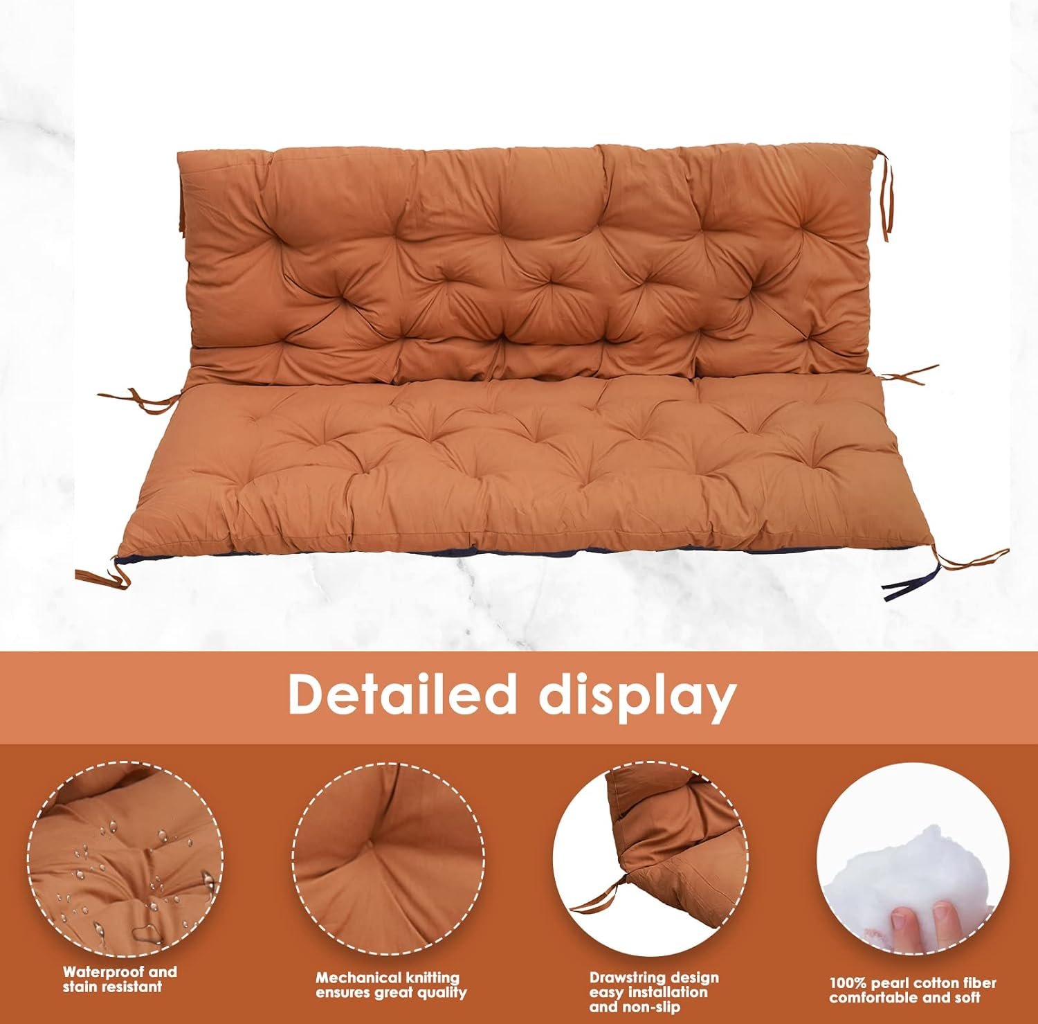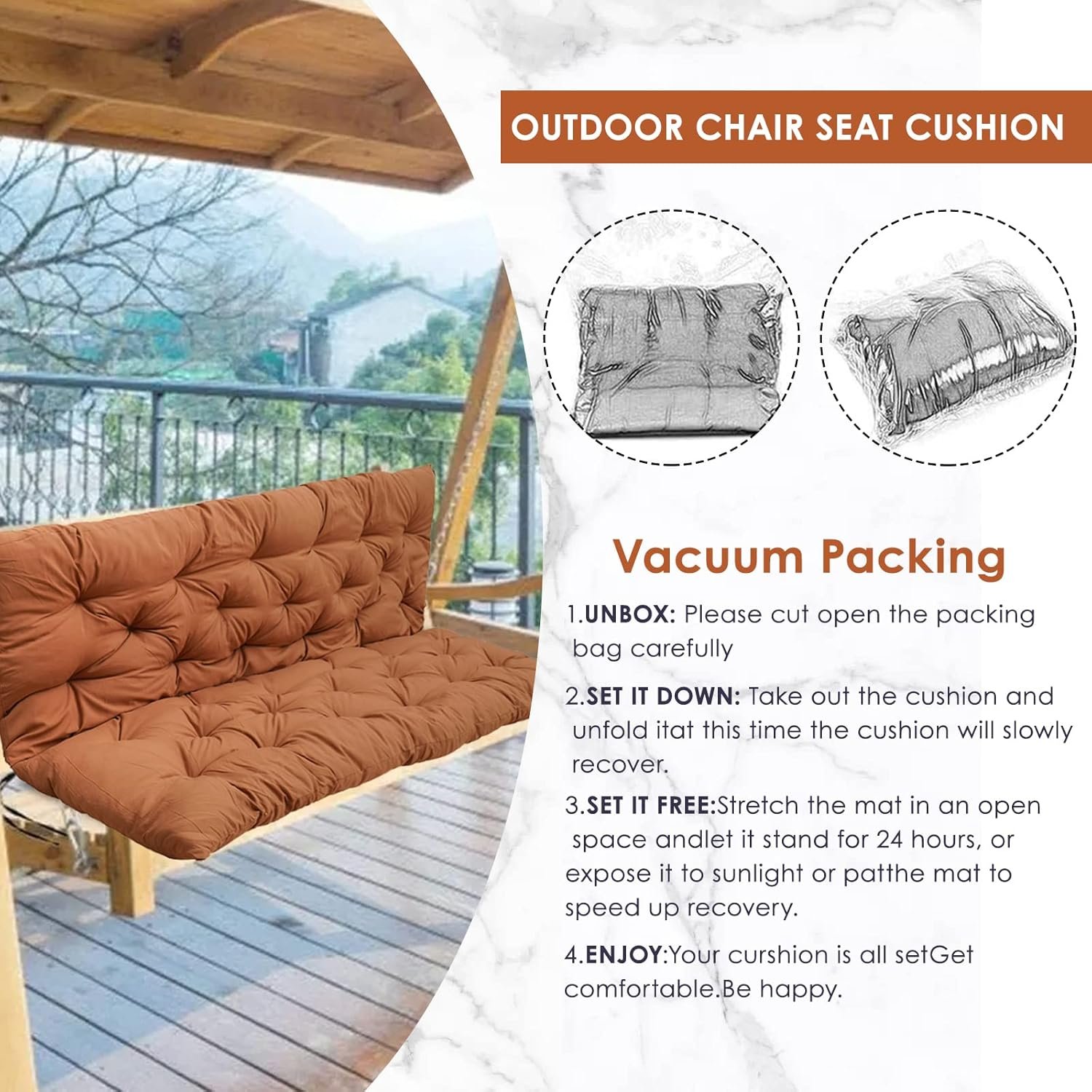 【After-sales service】porch swing cushions are compressed and shipped, they may not be particularly fluffy when you first receive them, please put the 3 seat swing cushion replacement under the sun to dry for 2-3 days, the cushions will return to their original shape. We want our customers to be 100% satisfied, if you have any questions, please contact me.