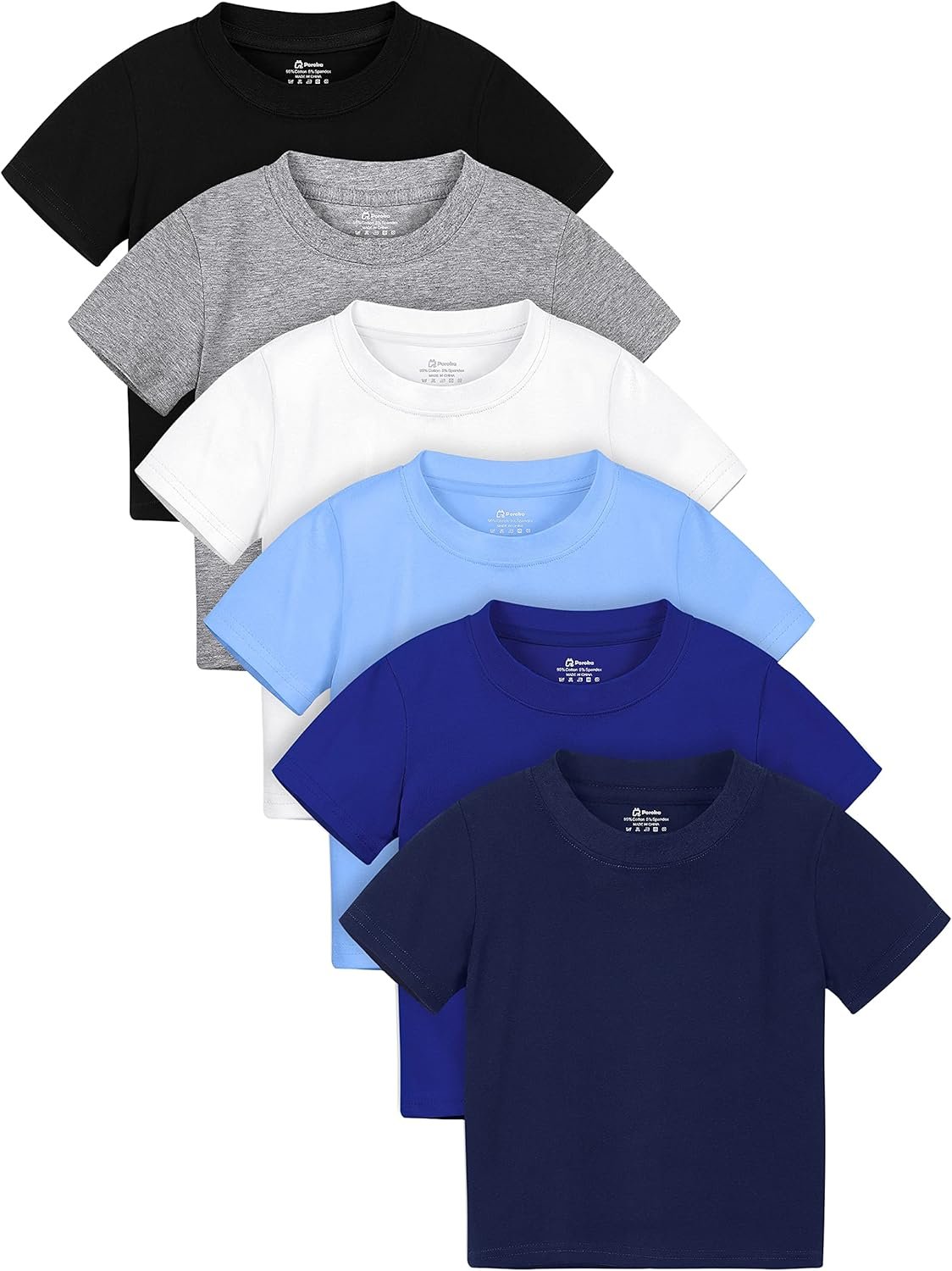 Poroka 6 Pack Baby Toddler Boys Solid Short-Sleeve Tee Shirts Infant Cotton T-Shirt with Crew Neck for Toddlers