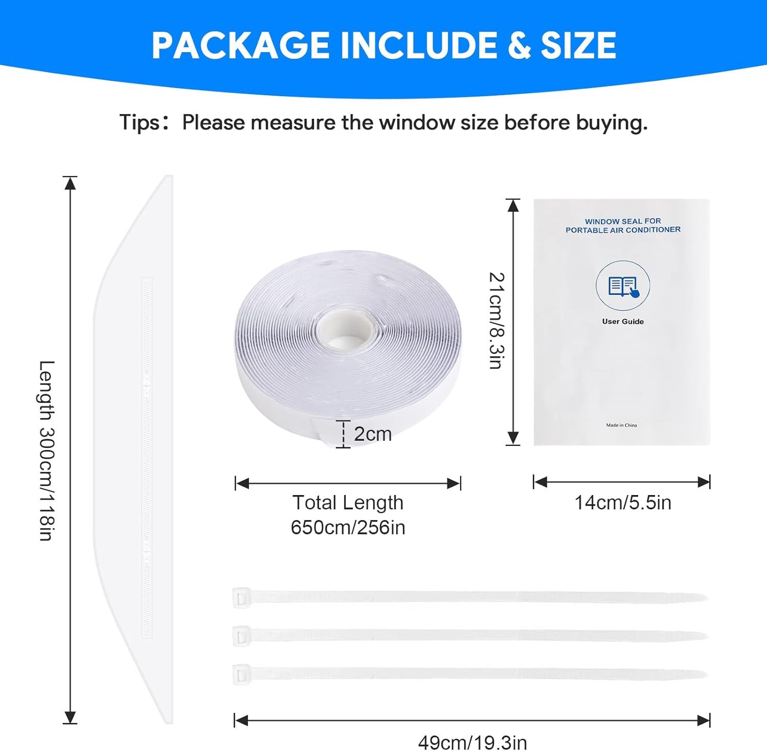 Portable Air Conditioner Window Seal Kit, 400CM (157”) AC Casement , Hot Air Stop Air Exchange Guards with Zip and Adhesive Fastener Works with Tumble Dryer, Keep House Cool