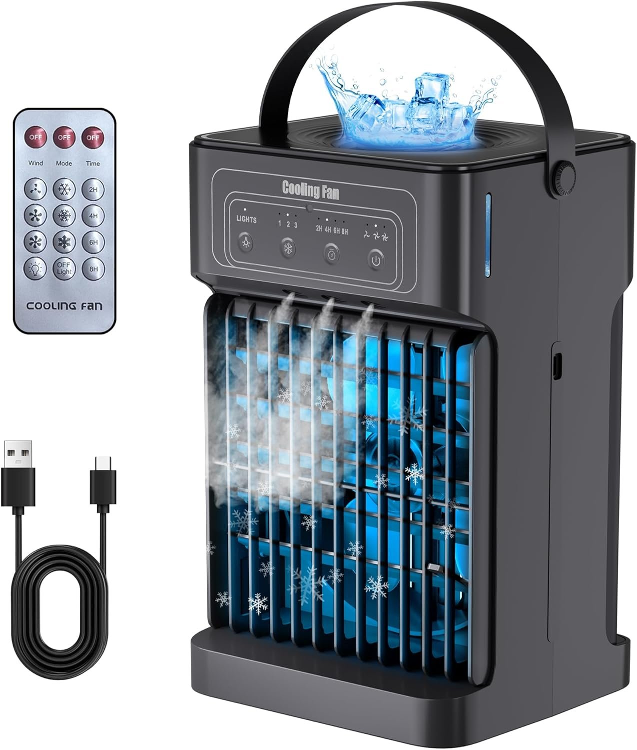 𝐔𝐩𝐠𝐫𝐚𝐝𝐞𝐝 𝐒𝐮𝐩𝐞𝐫 𝐒𝐭𝐫𝐨𝐧𝐠 𝐃𝐨𝐮𝐛𝐥𝐞 𝐅𝐚𝐧 𝐁𝐥𝐚𝐝𝐞𝐬: This small air conditioner equipped with a Double Fan Blades, with higher efficiency and stronger power output, stronger wind power.Capable of quickly transforming ice water into cold air, stay cool all day! (Just long press the wind speed switch to turn on the fan, comes with a manual, please read it carefully before use)
