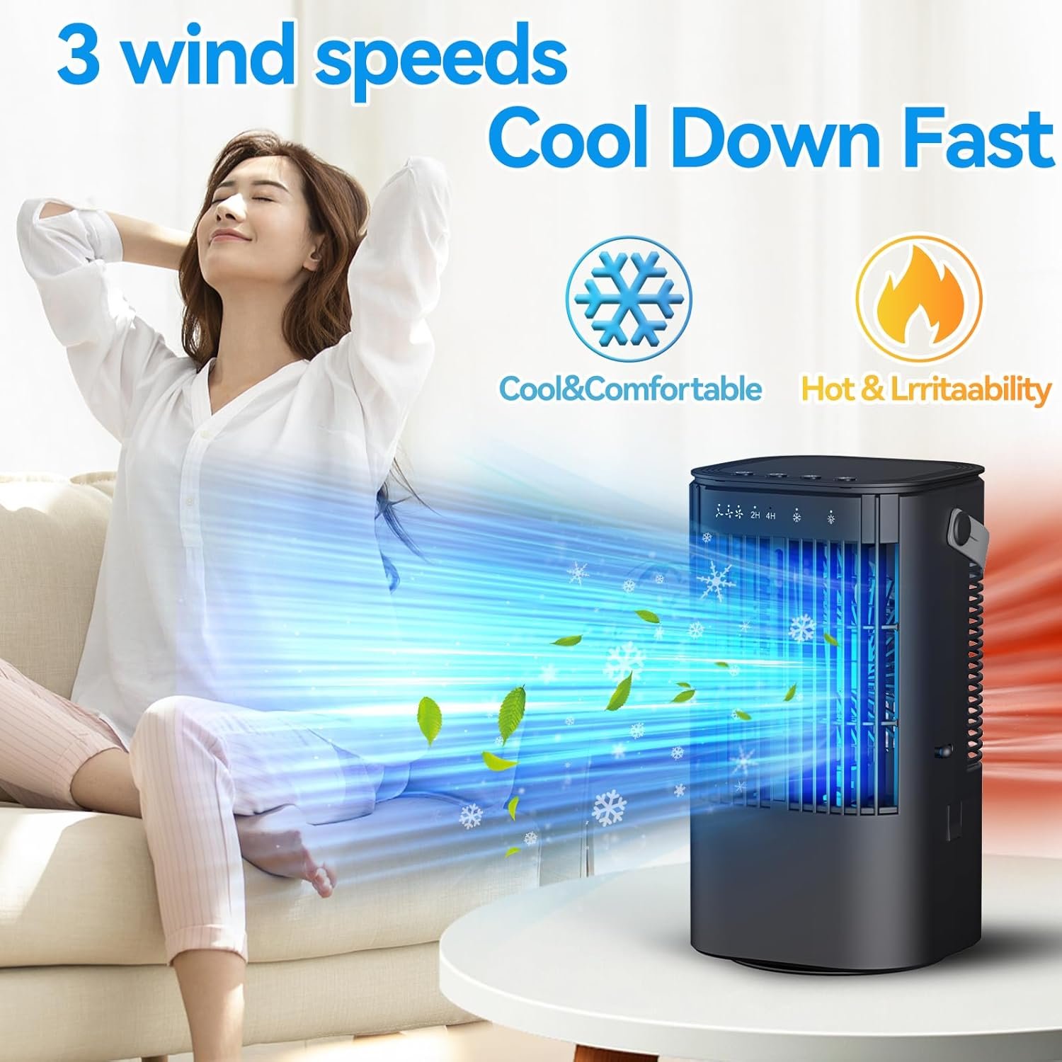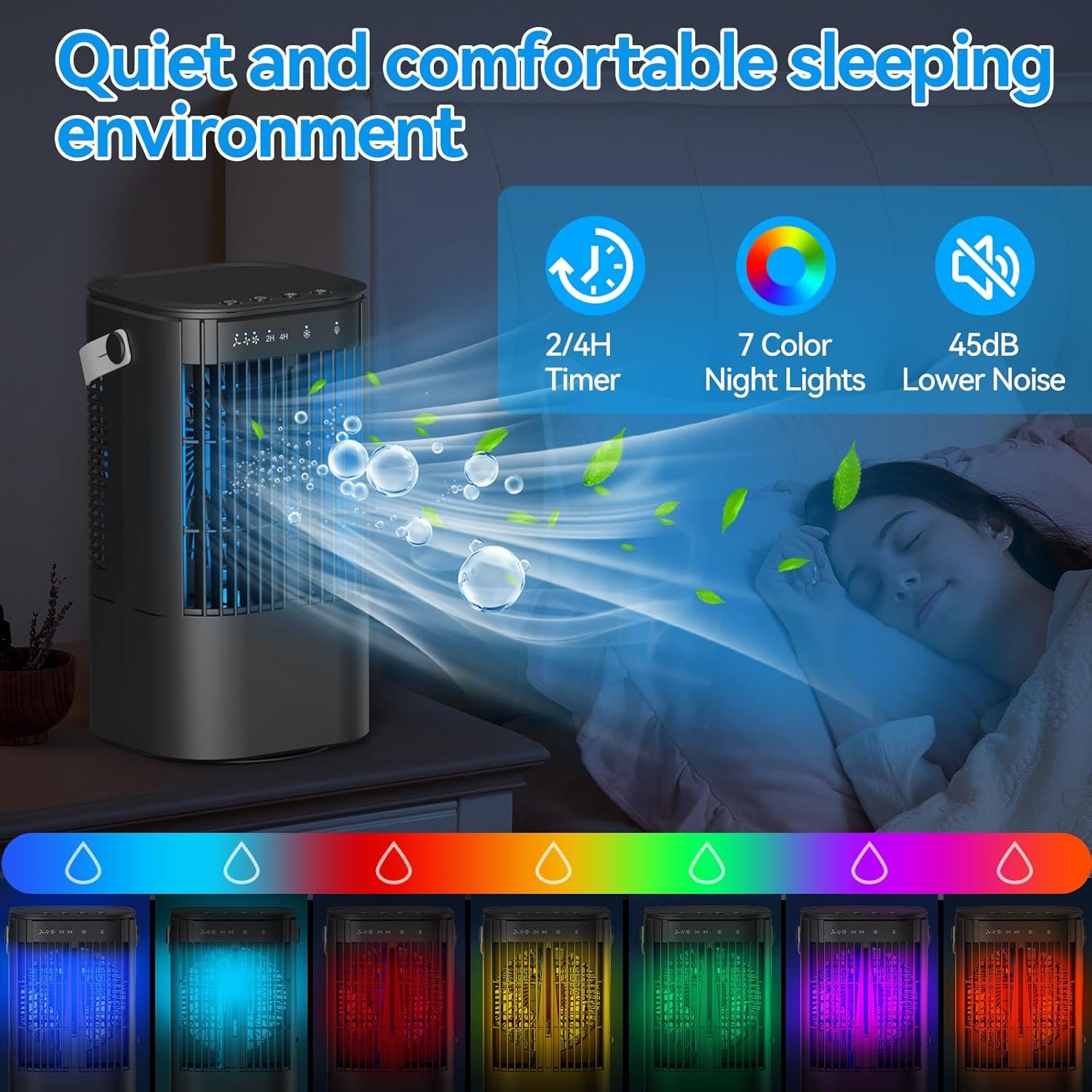 Portable Air Conditioners, 4-in-1 Mini Air Conditioner, Small Air Conditioner with 1000ml Water Tank, 3 Speeds, Adjustable Wind Direction, 7 Color Lights, Suitable for Offices, Bedrooms, Camping