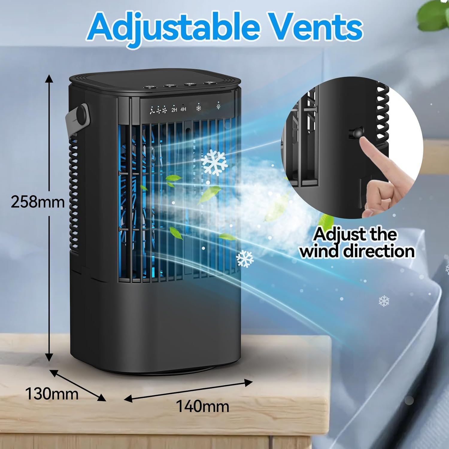 【Adjustable Air Direction, 3-Speed Wind Settings】This personal air conditioner features 3 wind speed settings that can be adjusted according to your needs, providing a gentle and soothing breeze or a strong and cool wind. Additionally, the airflow direction is also adjustable, offering you more choices.