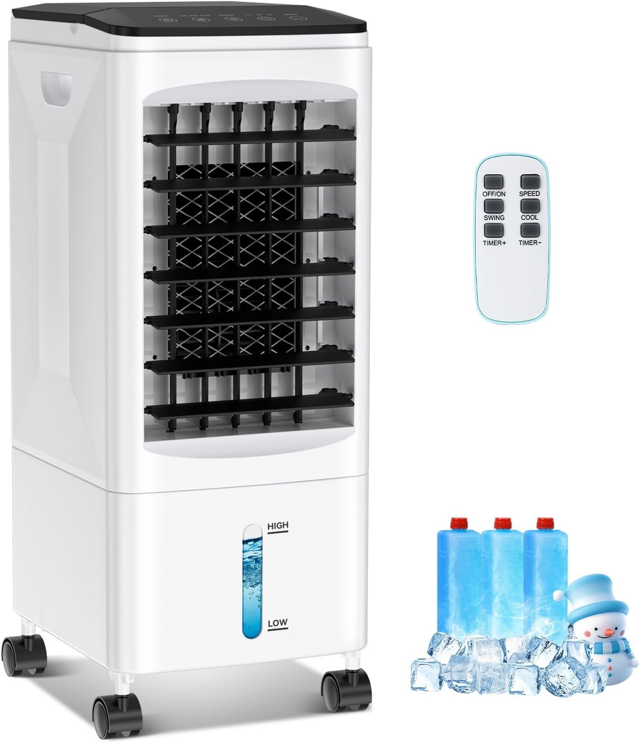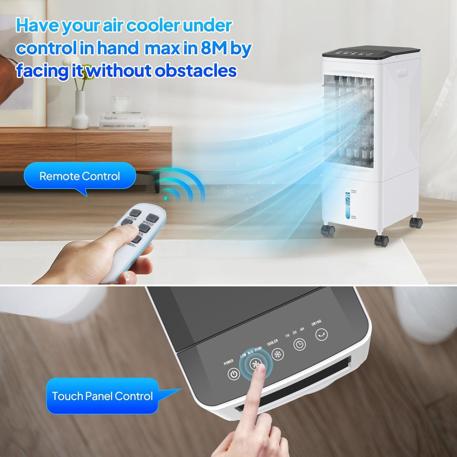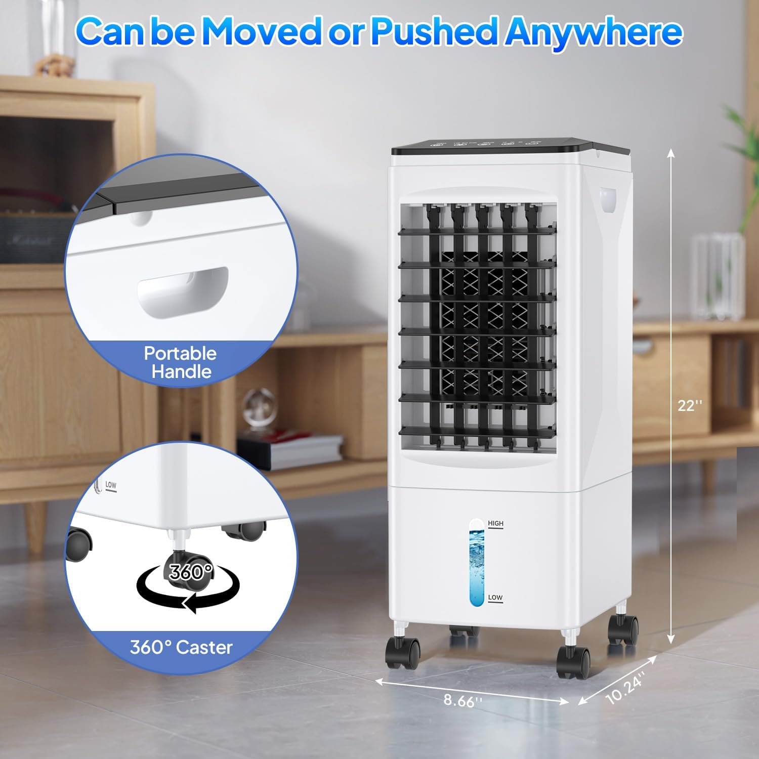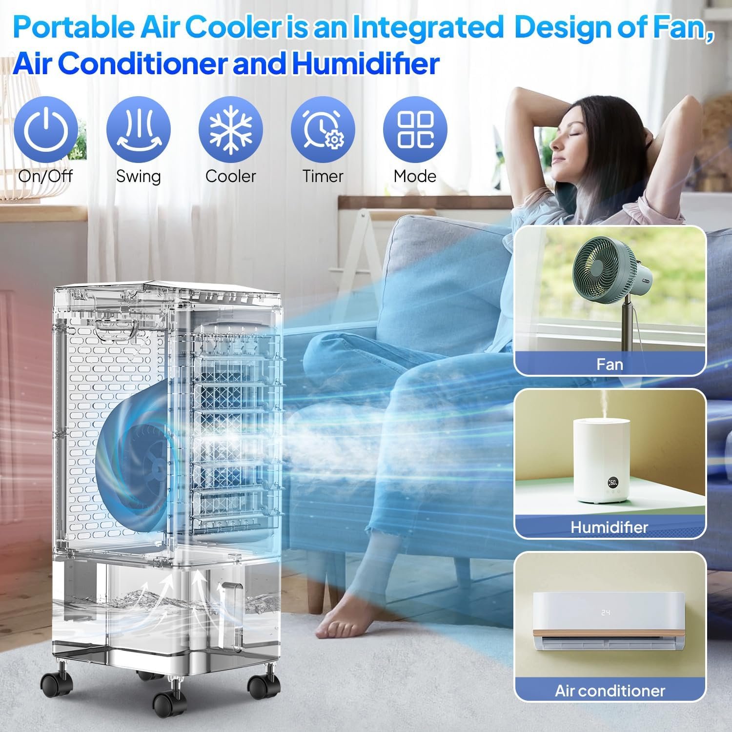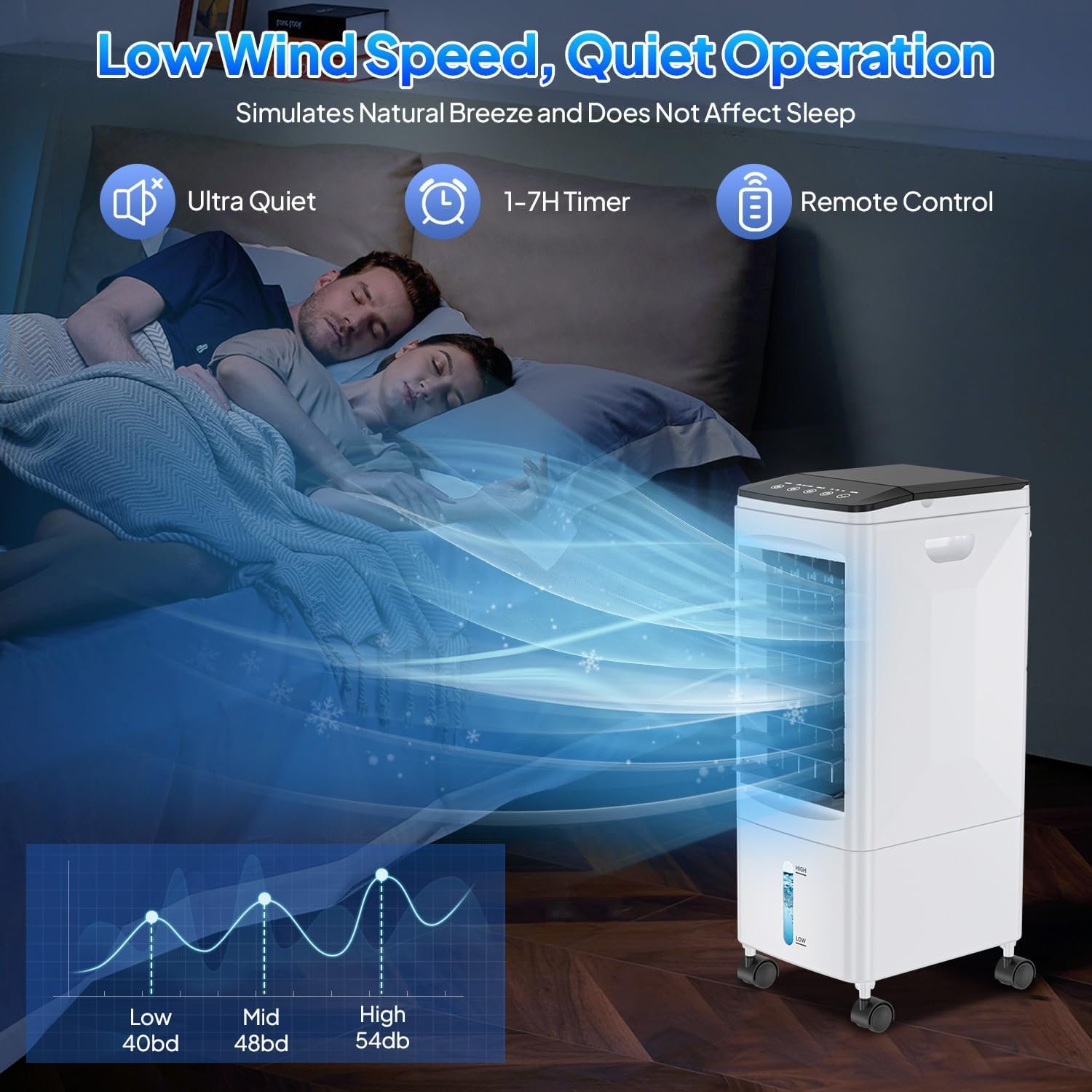 Double Water Tank: The air conditioner portable adopts a double water tank design and comes with 3 ice crystals. The upper water tank is easy to fill with water. After adding ice crystals to the upper water tank, you can enjoy a better cooling feeling without bending down. It is especially suitable for pregnant women and the elderly. The water tank is designed with drainage holes and a large capacity of 6L, making it easy to clean.