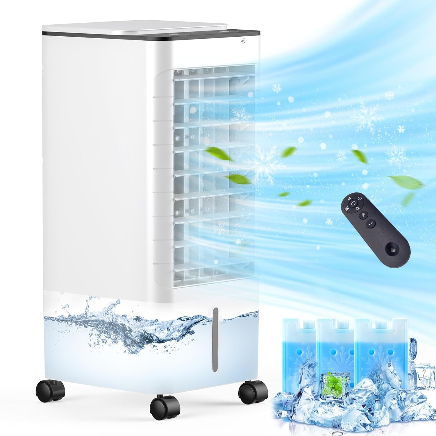 Portable Air Conditioners,Ac Unit Ductless Air Cooler,No Window Evaporative Oscillating Swamp Fan,Humidifier Removable Water Tank,3 Ice Box,Remote,for Room Indoor Outdoor Office Kitchen