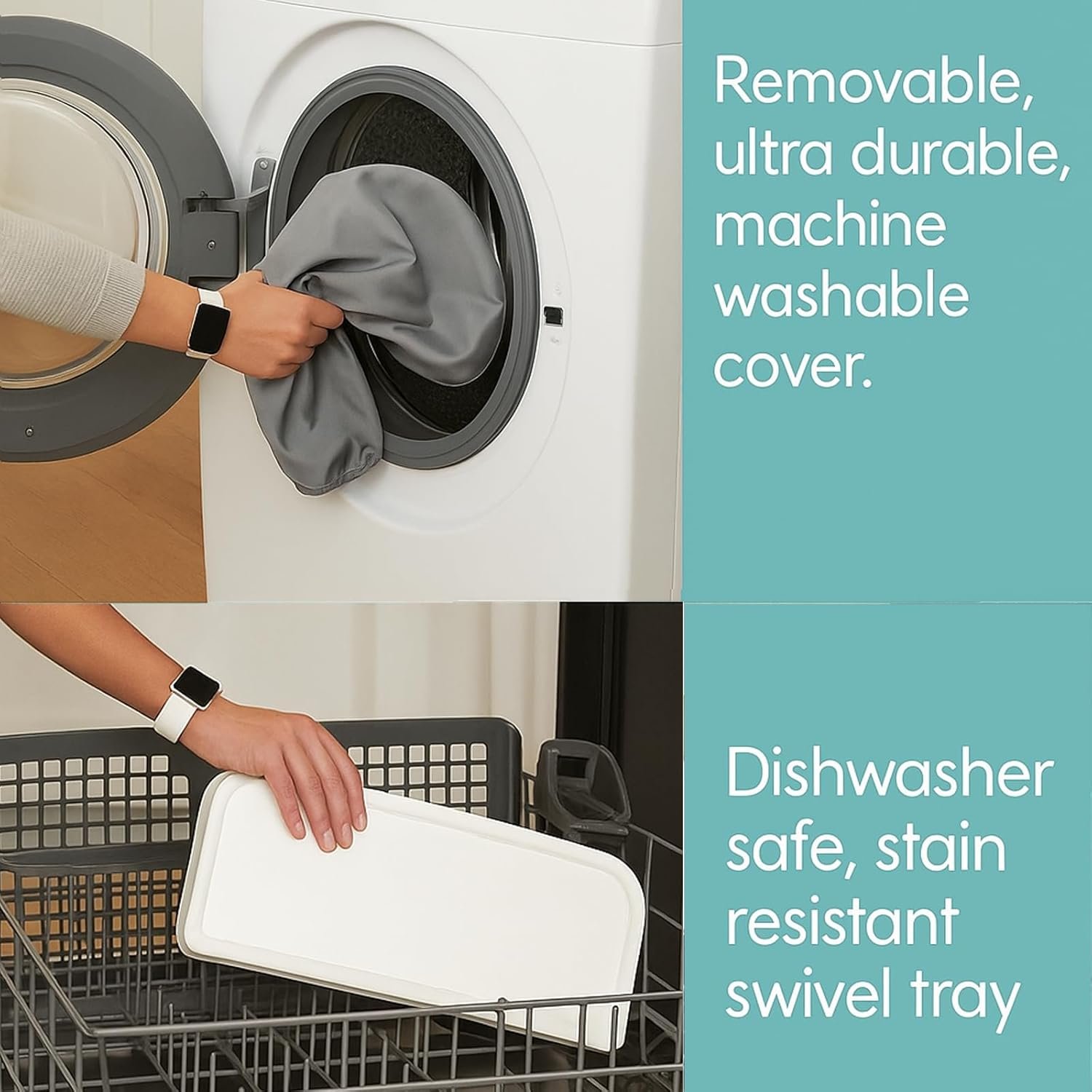 🌟 Removable Tray for Easy Feeding & Cleaning Features a detachable food tray that makes mealtime simple and mess-free. Just remove, rinse, and reattach. Ideal for travel, dining out, or quick cleanups.