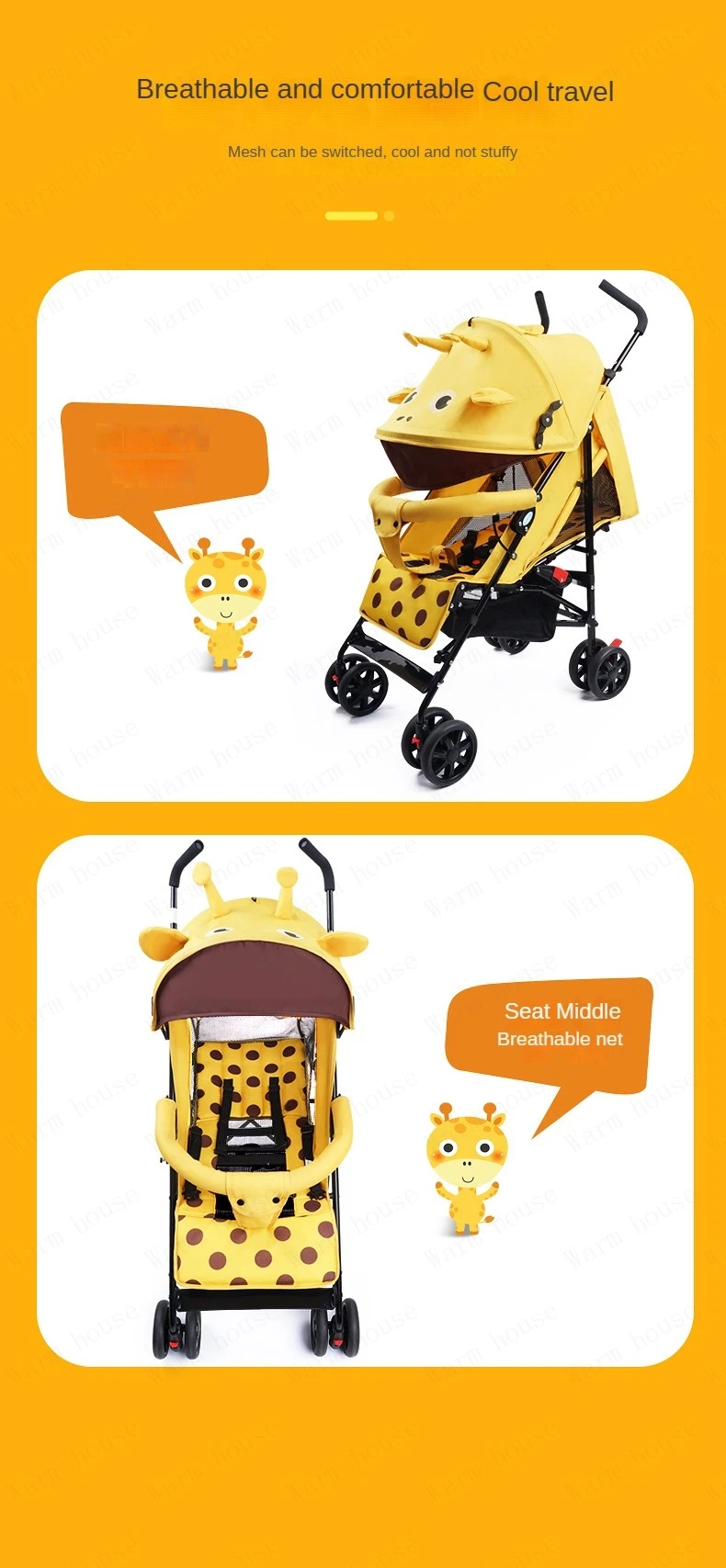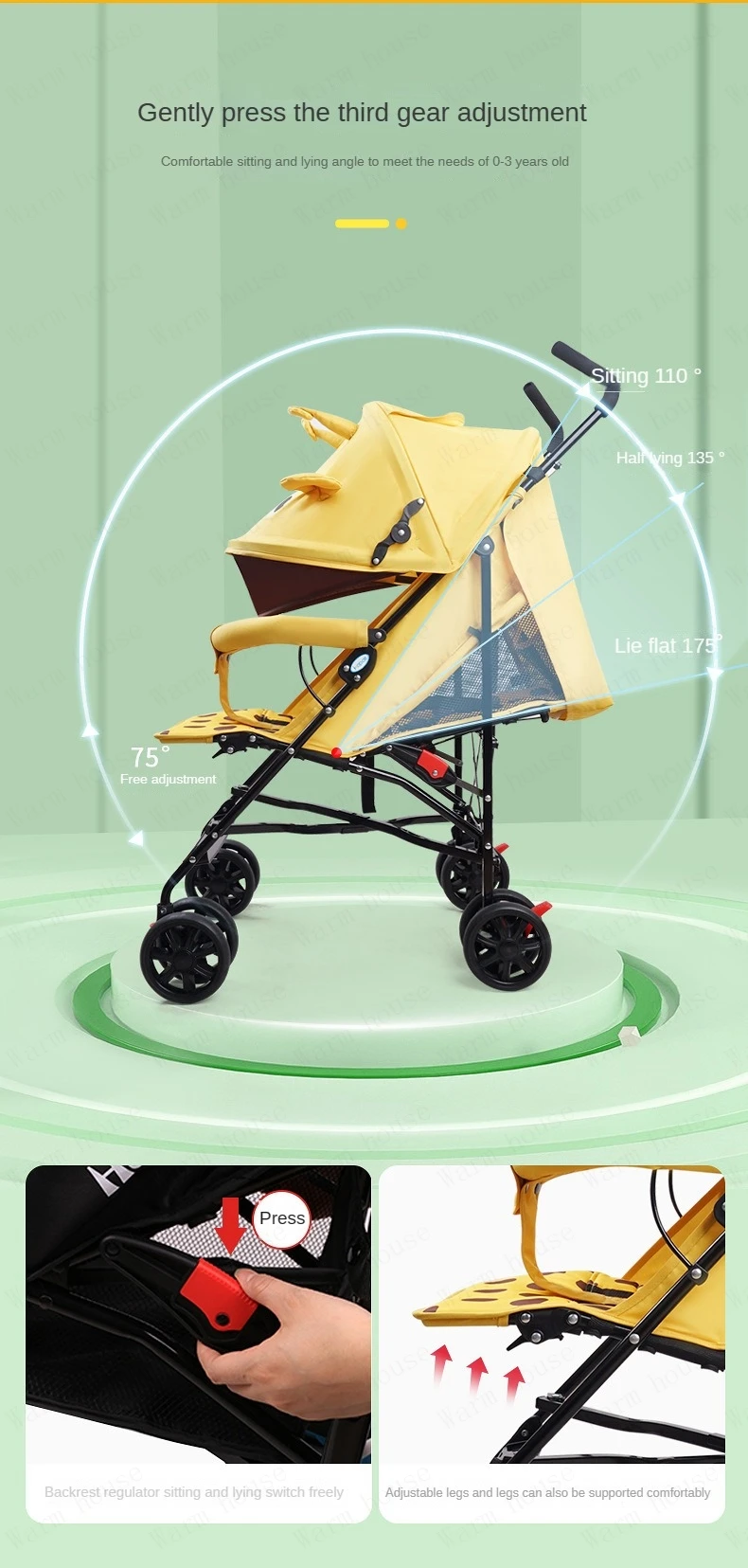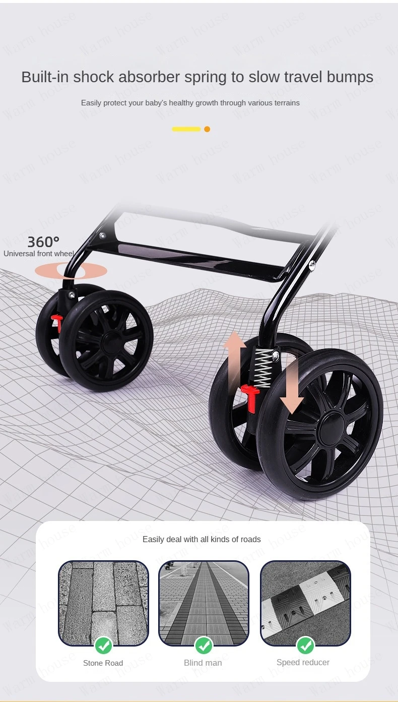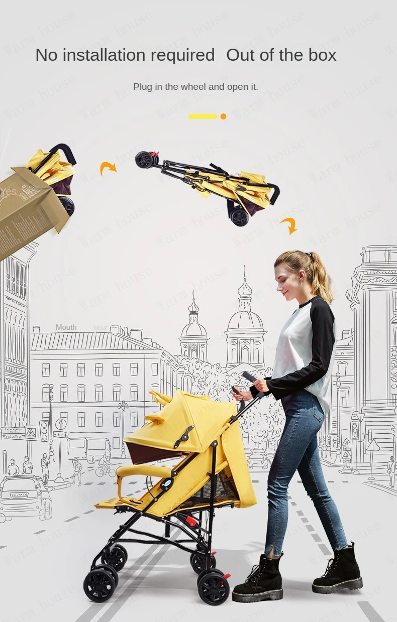 portable baby stroller Simple folding children’s shock absorber car Refreshing and breathable baby carriage Can sit or lie down