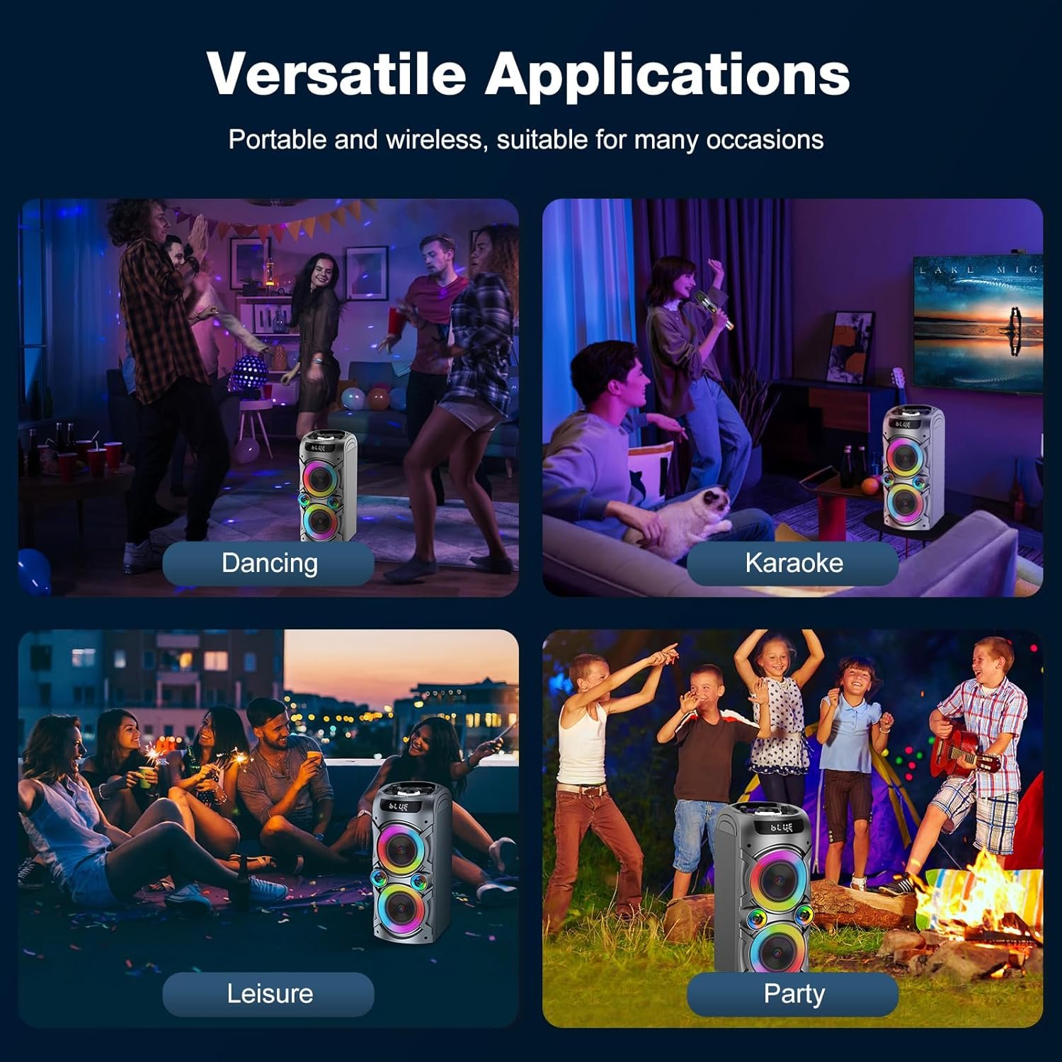 This A93 bluetooth speaker provides your party with high-quality Big Powerful Stereo sound, creating a pleasant and romantic karaoke party atmosphere. Come to a karaoke carnival party at home, in the garden, or outdoors anytime, anywhere!