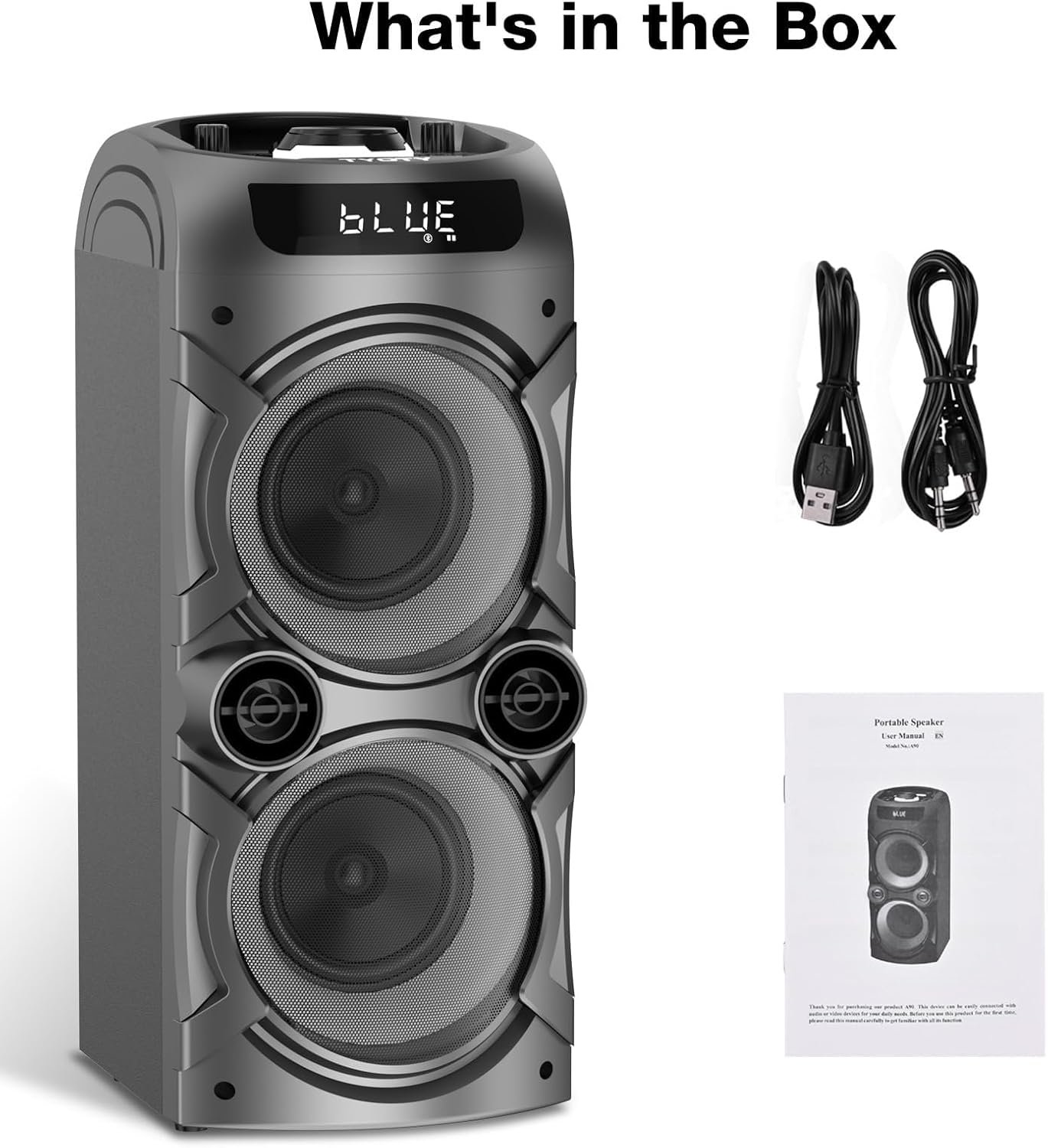 ♫ 【What’s in the package】 The Package includes the A93 party speaker x 1, USB charger cable x 1, 3.5mm AUX cable x 1, user manual x 1. ( NOTE: If you have any questions, please contact us, we will reply you within 7-24 hours to provide you with the best customer service ).